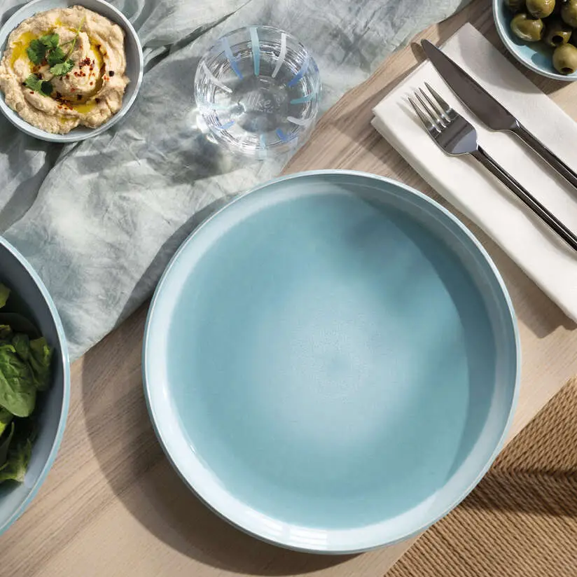 Talerz płaski Perlemor to połączenie swobodnego stylu inspirowanego naturą z wysoką jakością wykonania. Subtelny, niebieski odcień i efekt ręcznego szkliwienia sprawiają, że każdy posiłek nabiera wyjątkowego charakteru.