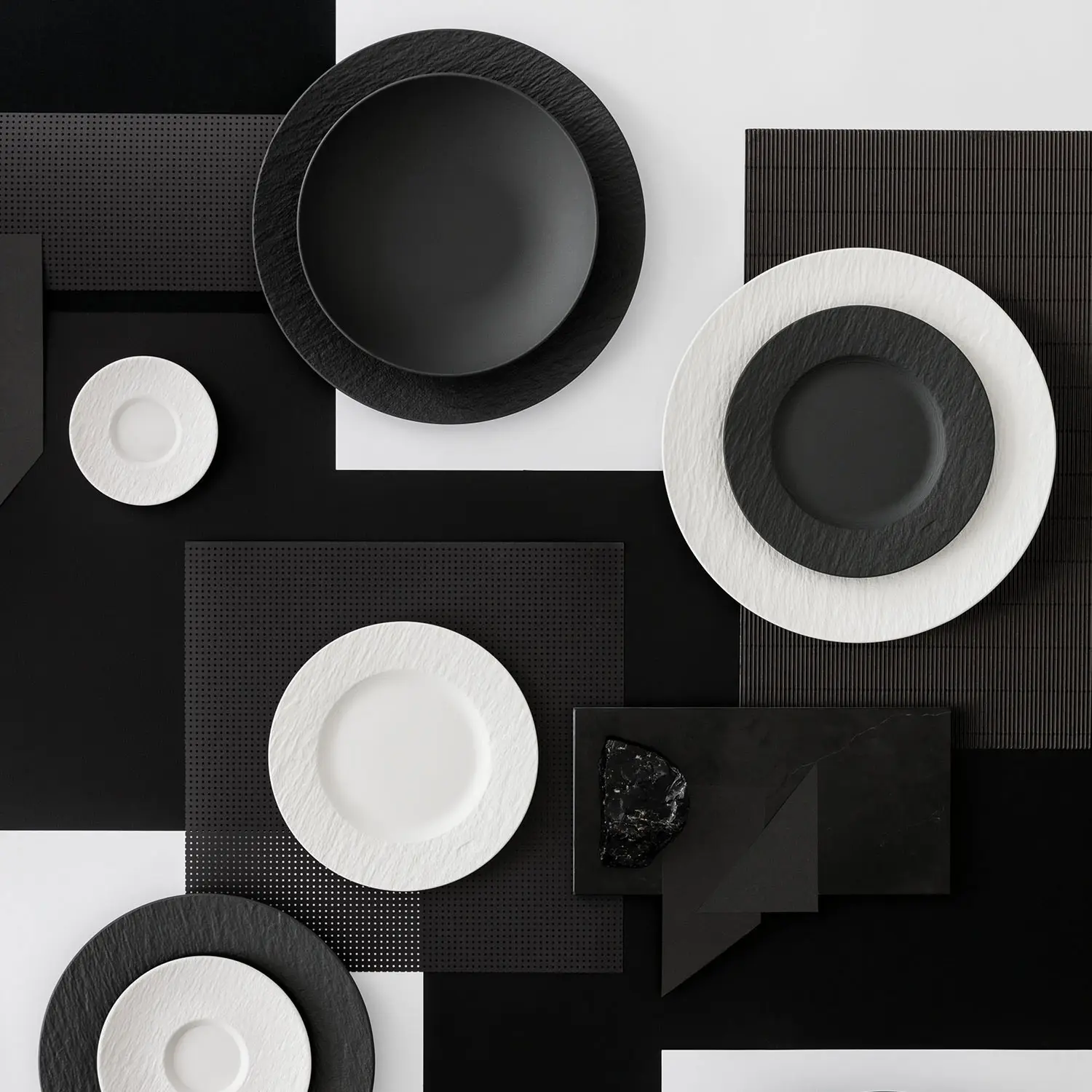 Kolekcja Manufacture Rock od marki Villeroy & Boch to idealne połączenie luksusu i wyrafinowanego designu, który jest nie tylko piękny wizualnie ale i odpowiednio praktyczny. Obejmuje ona zarówno wyjątkową zastawę stołową jak i artykuły dekoracyjne. Produkty wykonywane są w Niemczech z wysokiej jakości materiałów, dzięki czemu są solidne i trwałe. Elementy kolekcji harmonijnie wtapiają się w otoczenie przez co idealnie pasują do wielu stylów m.in. nowoczesnego, minimalistycznego, industrialnego a nawet skandynawskiego czy eklektycznego. Można je również traktować jako indywidualny akcent innej zastawy lub pomieszczenia - koncepcja Mix & Match.