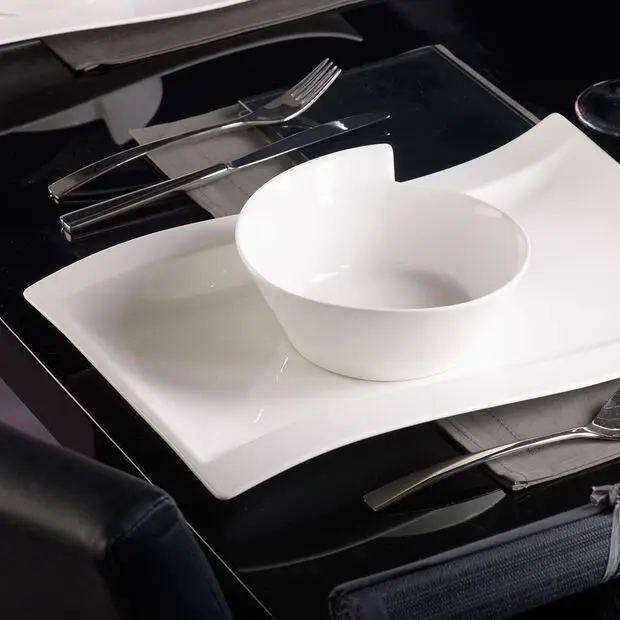 Eleganckie naczynia NewWave w kolorze czystej bieli przekonują nietypowym wzornictwem, dzięki któremu jego kształty zyskują wyrazisty charakter. Przejrzysty całościowy obraz pozostawia przy tym wiele miejsca na osobiste akcenty na nakrytym stole. Wzór, który został już wyróżniony jako modne naczynia roku, już od dawna jest prawdziwym bestsellerem.