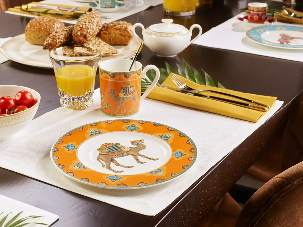 Talerz śniadaniowy o średnicy 225 mm z linii Samarkand Mandarin od Villeroy & Boch to część serwisu, w którym delikatne zdobienia oraz orientalny, wyrafinowany przepych łączą się w bajkowe kompozycje na zastawionym stole.