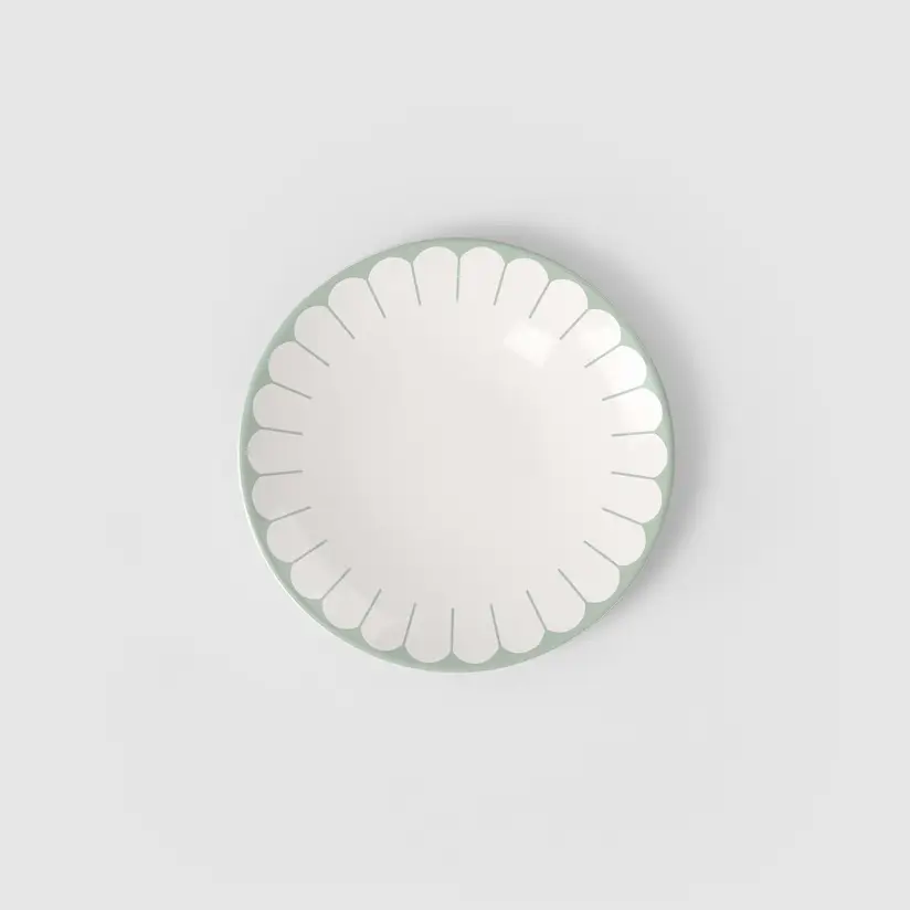 Talerz śniadaniowy / deserowy Fleur Vert o średnicy 21,2 cm to kwintesencja delikatności i subtelnego uroku. Ozdobiony finezyjnym motywem kwiatowym w odcieniach zieleni, wnosi na stół świeżość, lekkość i elegancję. Idealny do serwowania śniadań, deserów, małych przekąsek czy ciast.