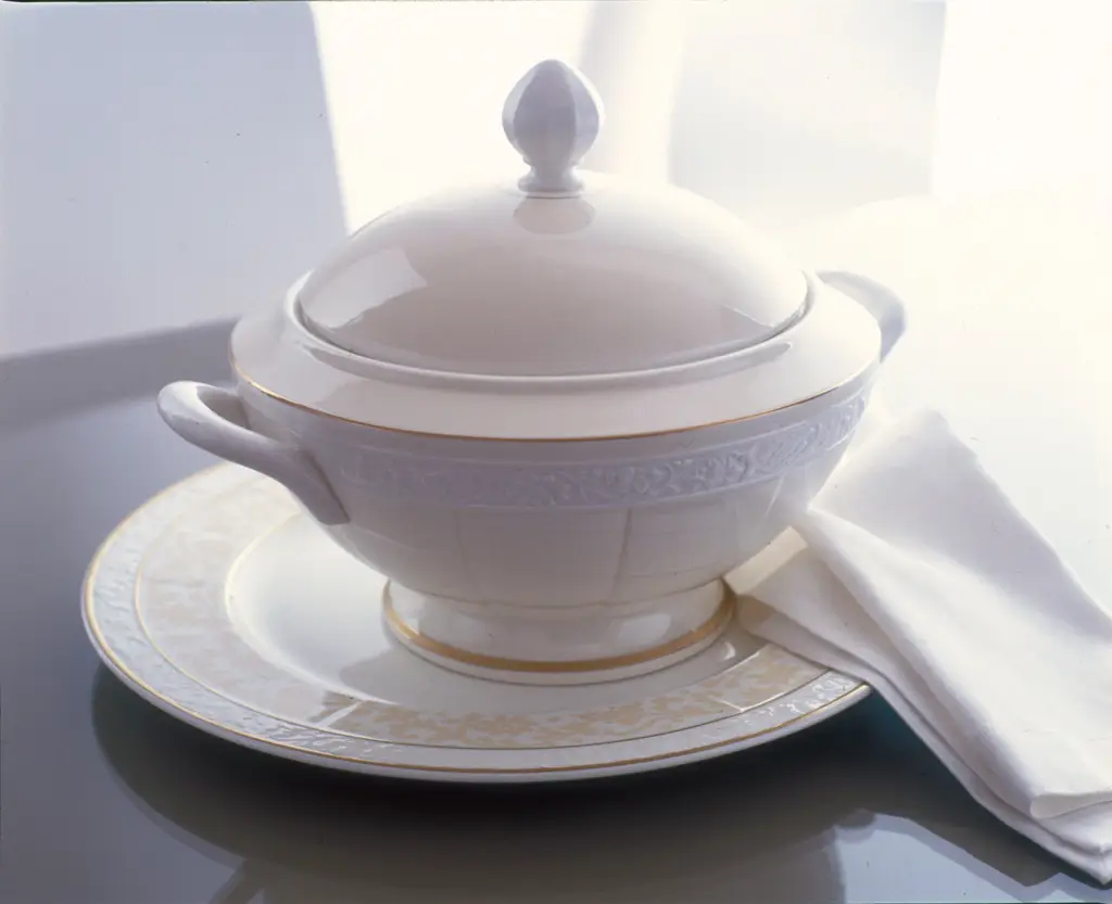 Waza do zupy o pojemności 2,8 litra z serii Ivoire od Villeroy & Boch jest częścią eleganckiego serwisu, gdzie stół emanuje ciepłem, a jego aranżacja jest zarazem klasyczna jak i współczesna.