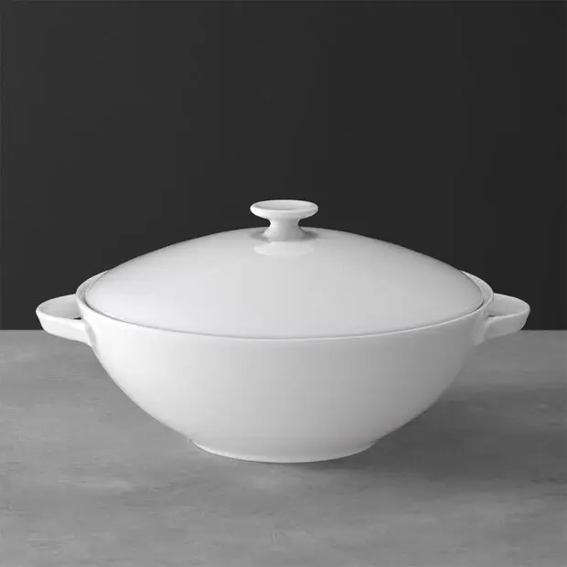 Waza do zupy o pojemności 2,2 litra z linii Anmut od Villeroy & Boch to elegancki odcień bieli kostnej porcelany Premium, który wpasowuje się bez problemu w każdą dekorację stołu.