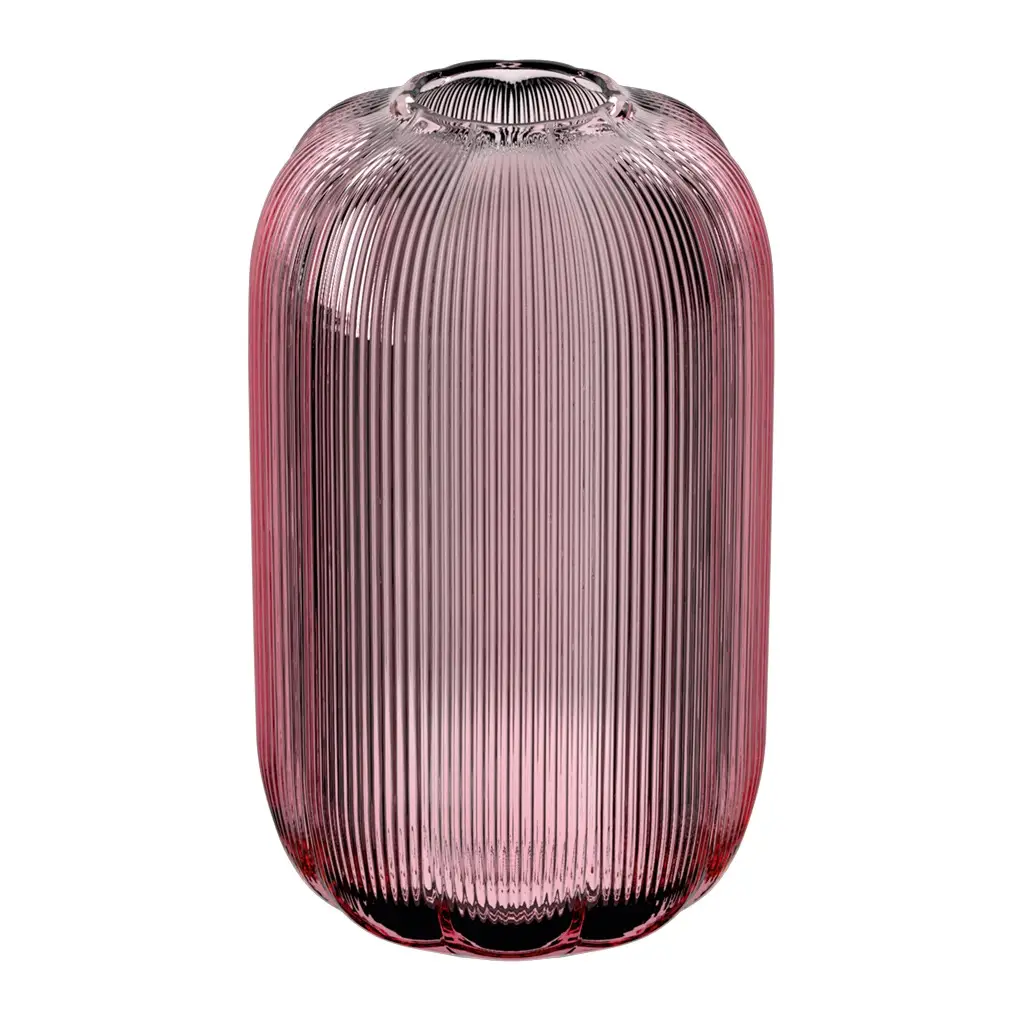Wysoki, ręcznie dmuchany wazon w odcieniu głębokiego fioletu doskonale podkreśla charakter długich łodyg oraz dużych bukietów. Dzięki imponującej wysokości i pojemności stanowi wyrazisty element dekoracyjny – zarówno solo, jak i w zestawieniu z innymi dodatkami z serii Fleur.