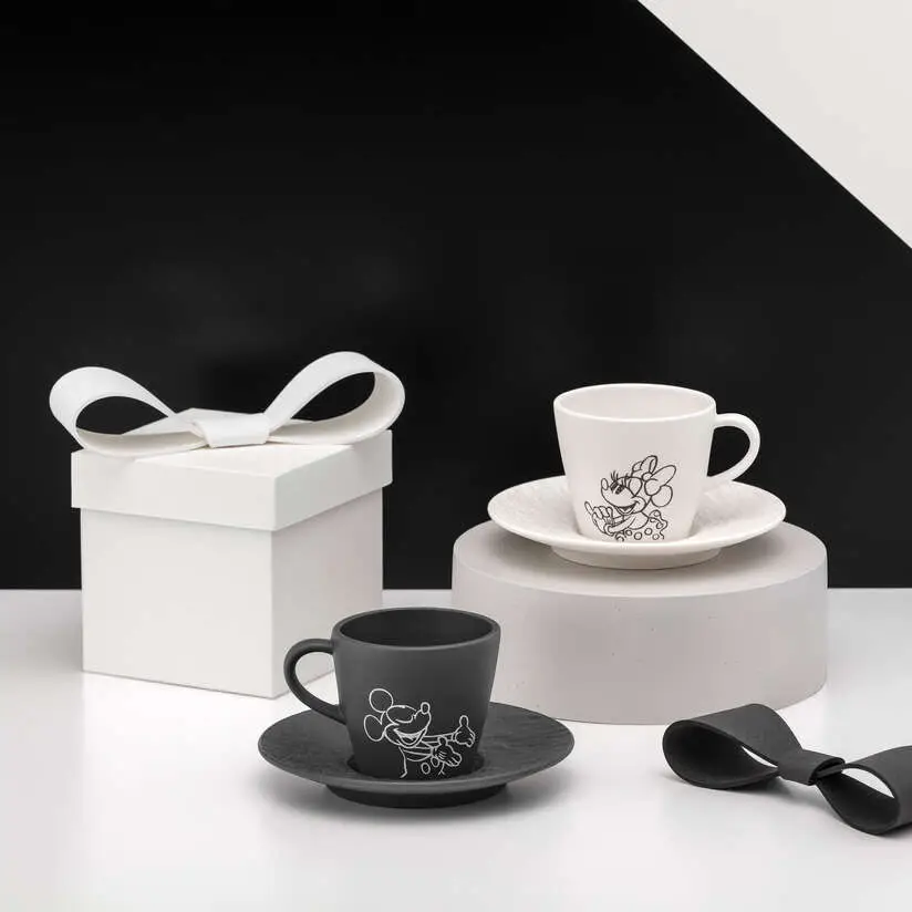 Zestaw filiżanek do espresso Manufacture – Mickey Mouse to propozycja dla tych, którzy celebrują kawę nie tylko smakiem, ale i formą. Kontrast czerni i bieli oraz subtelny motyw Mickey Mouse tworzą elegancką, a jednocześnie nowoczesną kompozycję.