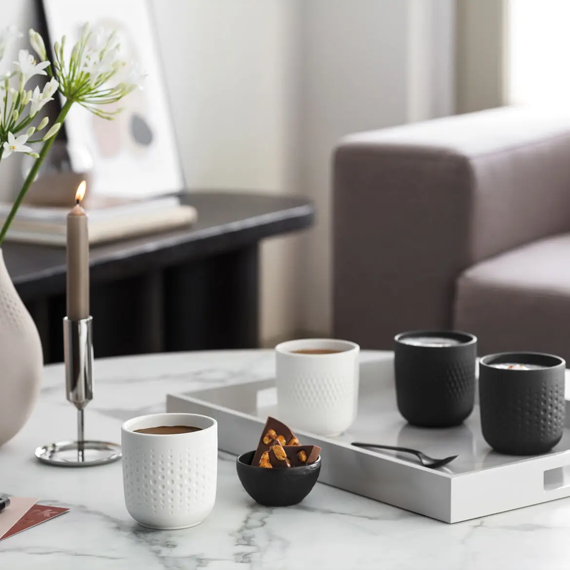 Efektowny zestaw kubków Manufacture Collier Blanc to idealne uzupełnienie kolekcji. Elegancki wzór oraz ponadczasową kolorystykę pokochają minimaliści. To idealny prezent dla miłośników designu! Warto zrobić prezent sobie lub innym!