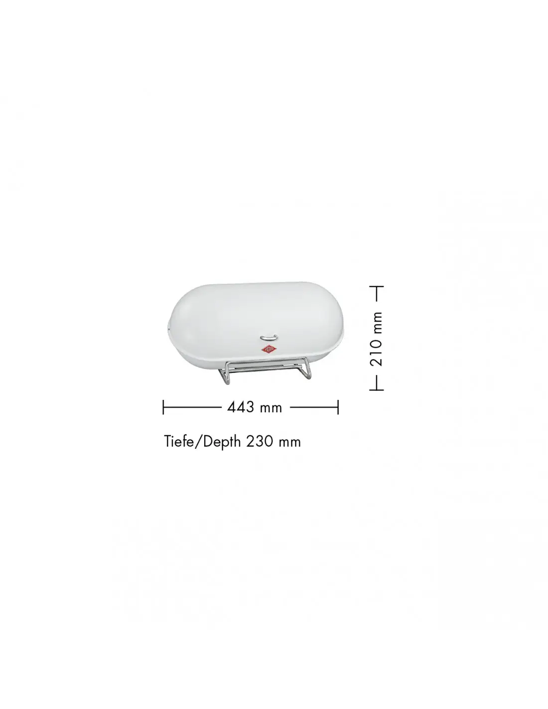 Wykonany z najwyższej jakości stali lakierowanej proszkowo z chromowaną podstawą i uchwytem. W środku chlebak połączony został metalowymi zawiasami, które zostały powleczone tworzywem sztucznym dla zapewnienia higienicznego przechowywania pieczywa.