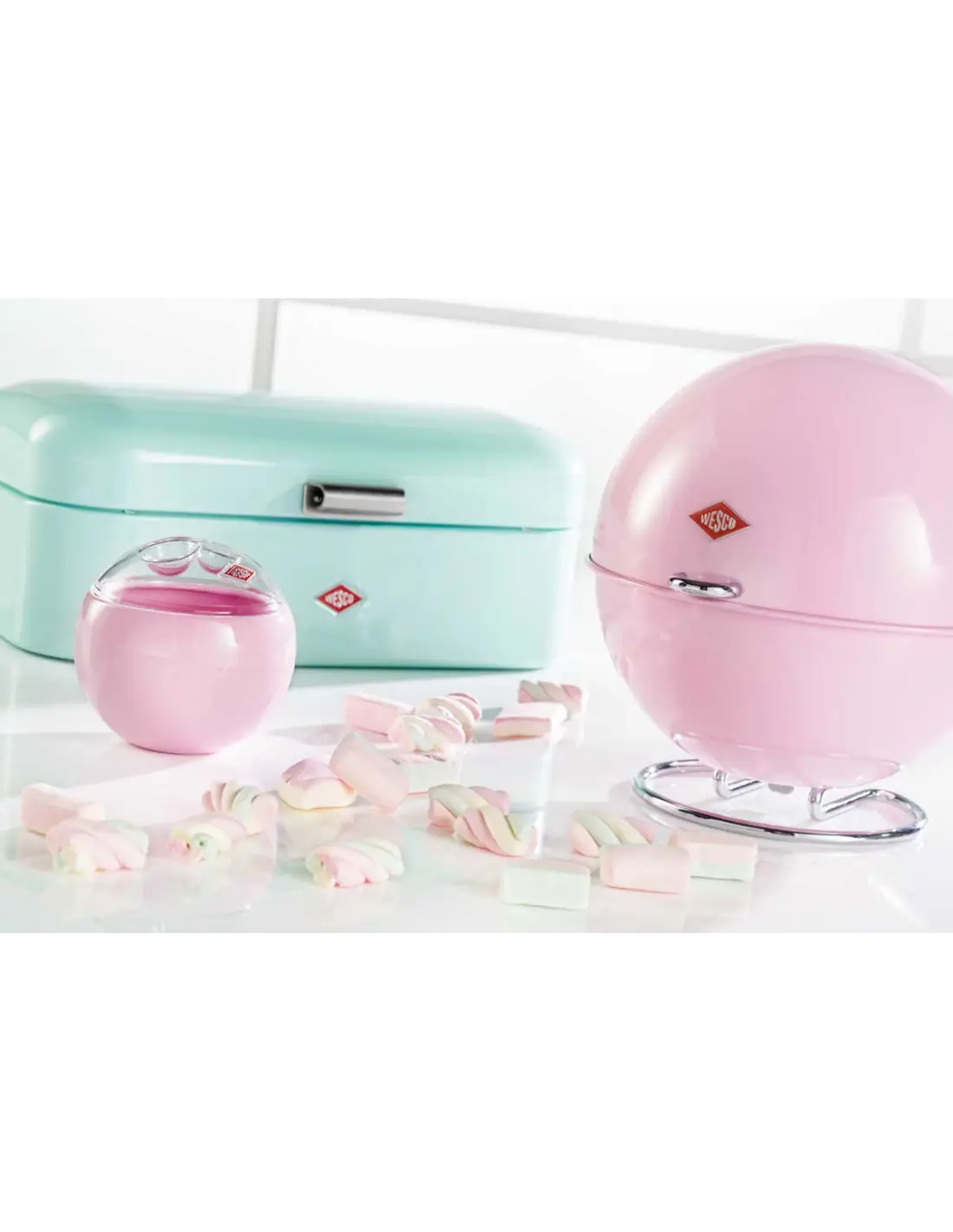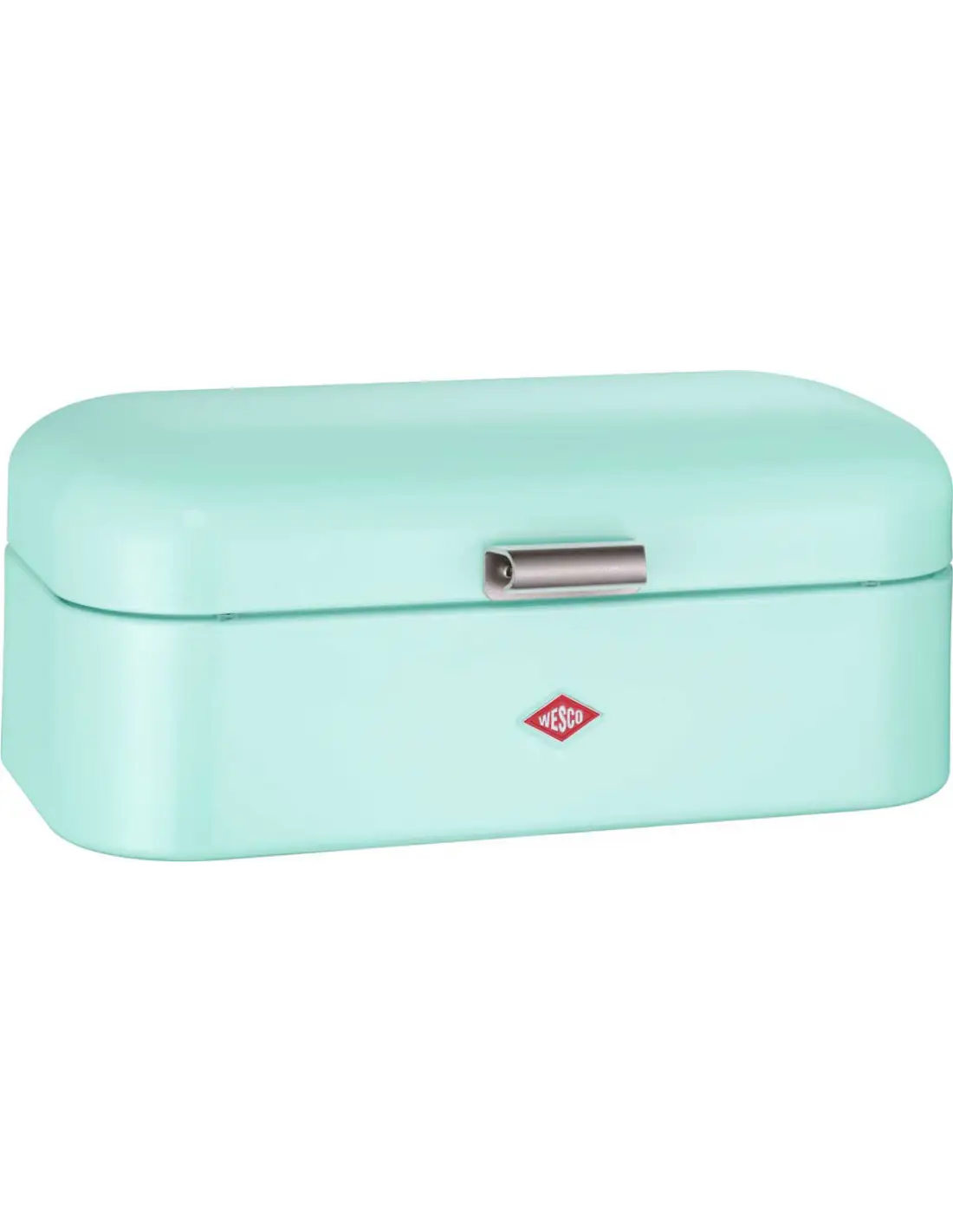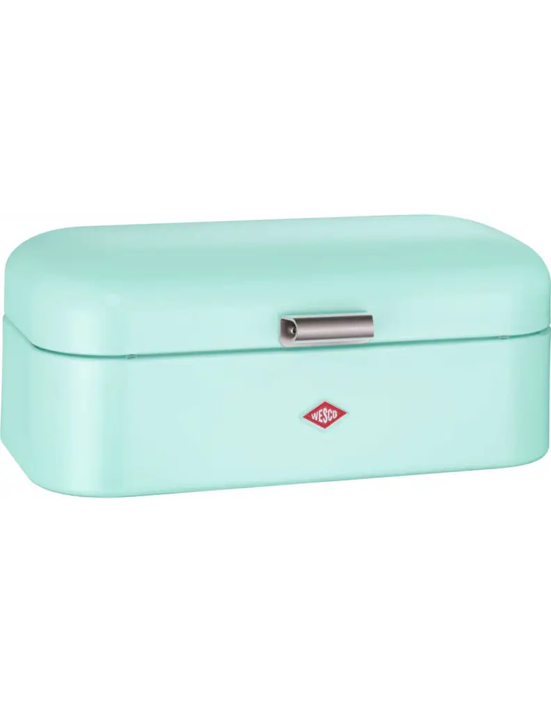 Inspirowany stylem retro chlebak Grandy w pastelowym miętowym kolorze to idealny produkt dla dużej rodziny. Wykonany jest z wysokiej jakości stali nierdzewnej lakierowanej proszkowo. Posiada wygodny chromowany uchwyt. Szeroki kształt chlebaka pozwala na przechowywanie różnego rodzaju pieczywa w higieniczny sposób - nawet długich bagietek. Otwory wentylacyjne zapewniają obieg powietrza, dzięki czemu wypieki zachowają dłużej świeżość i zapach.