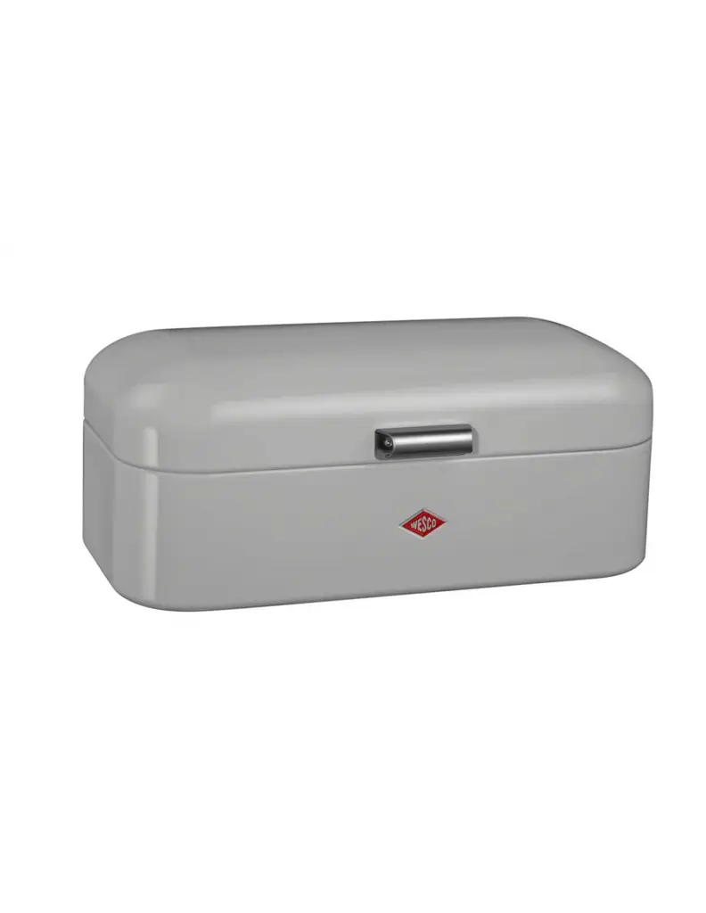 Inspirowany stylem retro chlebak Grandy w intensywnym szarym kolorze to idealny produkt dla dużej rodziny. Wykonany jest z wysokiej jakości stali nierdzewnej lakierowanej proszkowo. Posiada wygodny chromowany uchwyt. Szeroki kształt chlebaka pozwala na przechowywanie różnego rodzaju pieczywa w higieniczny sposób - nawet długich bagietek. Otwory wentylacyjne zapewniają obieg powietrza, dzięki czemu wypieki zachowają dłużej świeżość i zapach.