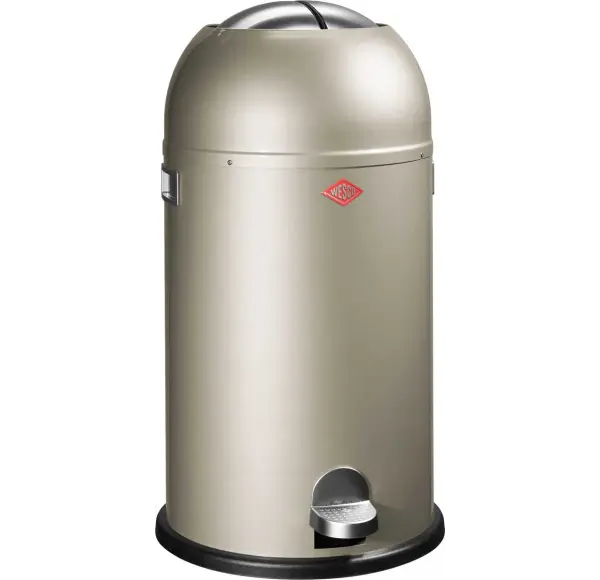 Produkty Wesco doskonale dopasowane są do nowoczesnych pomieszczeń bądź utrzymanych w nawiązaniu do stylu retro. Pojemnik z mechanizmem pedałowym posiada antypoślizgową podstawę z tworzywa sztucznego. Jego korpus wykonany został ze stali lakierowanej proszkowo, natomiast dwuczęściowe wieko, pedał mechanizmu i uchwyty ze stali nierdzewnej. Zdejmowana klapa oraz wyjmowany, metalowy wkład na odpady daje możliwość łatwego opróżniania i utrzymania w pojemnika w czystości.