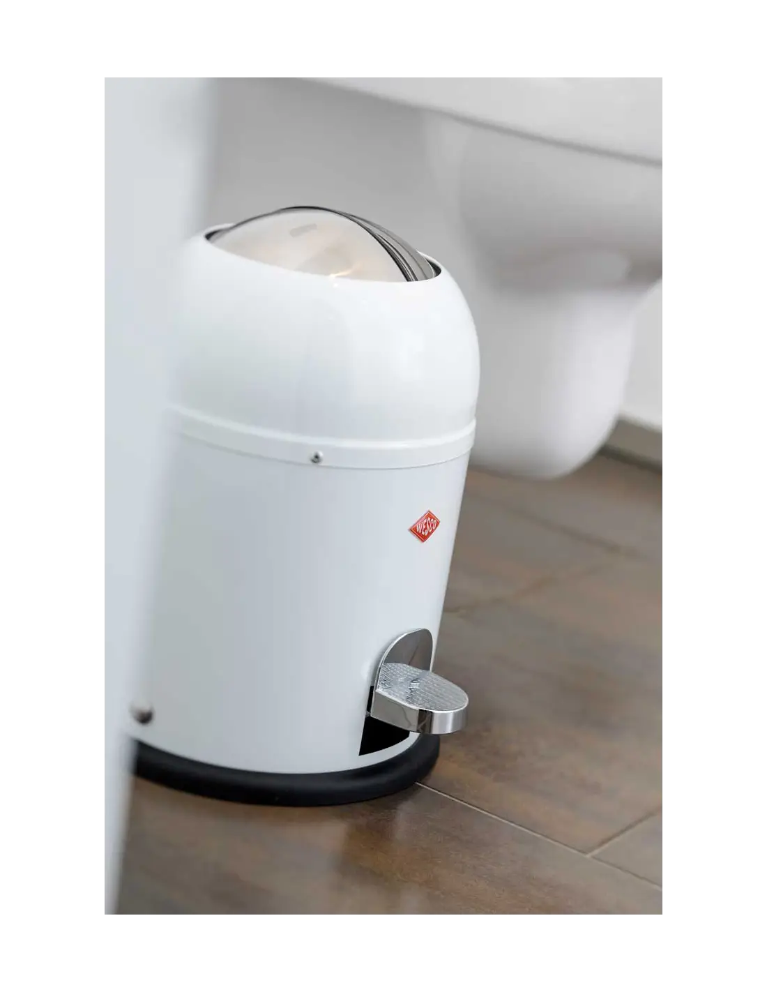Elegancki kosz na śmieci Mini Master od marki WESCO znakomicie odnajdzie się w małych pomieszczeniach, takich jak łazienka, kuchnia czy pokój dziecięcy. Wykonany z wysokiej jakości stali nierdzewnej lakierowanej proszkowo produkt posiada półokrągłą klapę, otwieraną za pomocą mechanizmu pedałowego. Podstawa kosza z tworzywa sztucznego jest antypoślizgowa i zapobiega zarysowaniom na podłodze. Stylistyka produktu utrzymana jest w stylu retro, klasyczny wygląd pasuje zarówno do nowoczesnych, jak i tradycyjnych pomieszczeń.