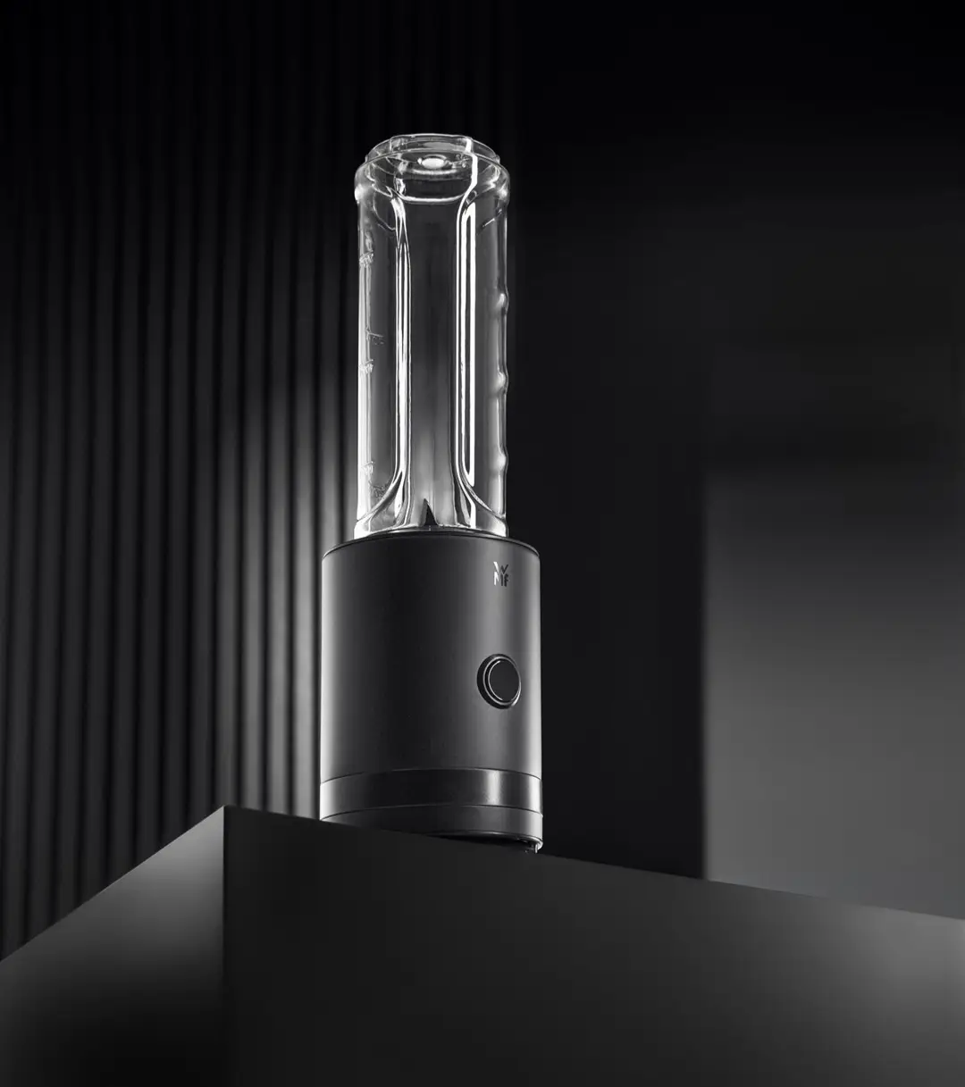Prezentowany blender o mocy 300 W, szybkości 23 000 obrotów na minutę i pojemności 600 ml doskonale nada się do przygotowywania smoothies i koktajli, będących świetnym dodatkiem do śniadania. Wyposażony został w 4-skrzydłowe ostrze WMF Perfect Cut, które nadaje się także do kruszenia lodu, co zwiększy zastosowania blendera. Jego kompaktowe, niewielkie wymiary sprawiają, że nie zajmie wiele miejsca w kuchni, nadając się do małych przestrzeni. Można go też będzie zabrać na wyjazd. W komplecie do blendera dołączona została dodatkowa butelka z tritanu wraz z pokrywkę do zakręcania, dzięki czemu przygotowany koktajl będzie można zabrać ze sobą na zewnątrz. Zaletą butelek jest ponadto możliwość mycia w zmywarce, co ułatwi zachowanie ich w czystości.