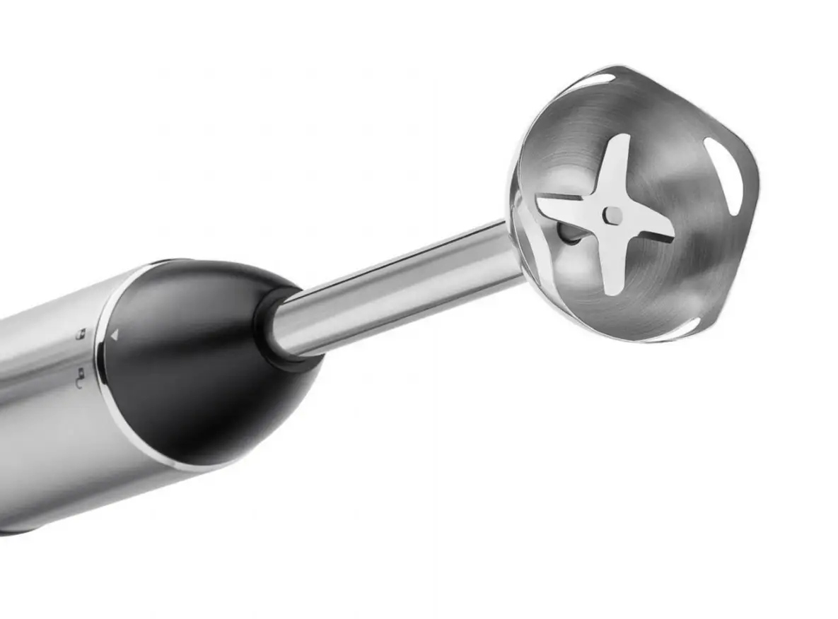 Prezentowany blender ręczny z linii Kult X ma solidną konstrukcję i silnik o mocy wyjściowej 600 W. Wyposażony został w 4-skrzydłowe ostrze z technologią Perfect Cut i 6 poziomów prędkości, co pozwoli na łatwe miksowanie owoców, szpinaku, skruszenie lodu czy orzechów według indywidualnych potrzeb. Jego ergonomiczny korpus umożliwi łatwe i komfortowe używanie, a możliwość zdjęcia końcówki z ostrzami nie tylko ułatwi jej czyszczenie, ale i przechowywanie blendera. Ostrze należy myć ręcznie.