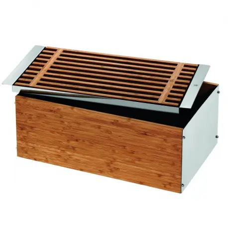 Pojemnik WMF Gourmet to oryginalne i praktyczne naczynie do przechowywania pieczywa, ciast i innych wypieków. Wykonany z wysokiej jakości stali nierdzewnej Cromargan® i bambusa pojemnik przyciąga swoim wyjątkowym designem. Praktyczna pokrywa może służyć jako deska do krojenia.