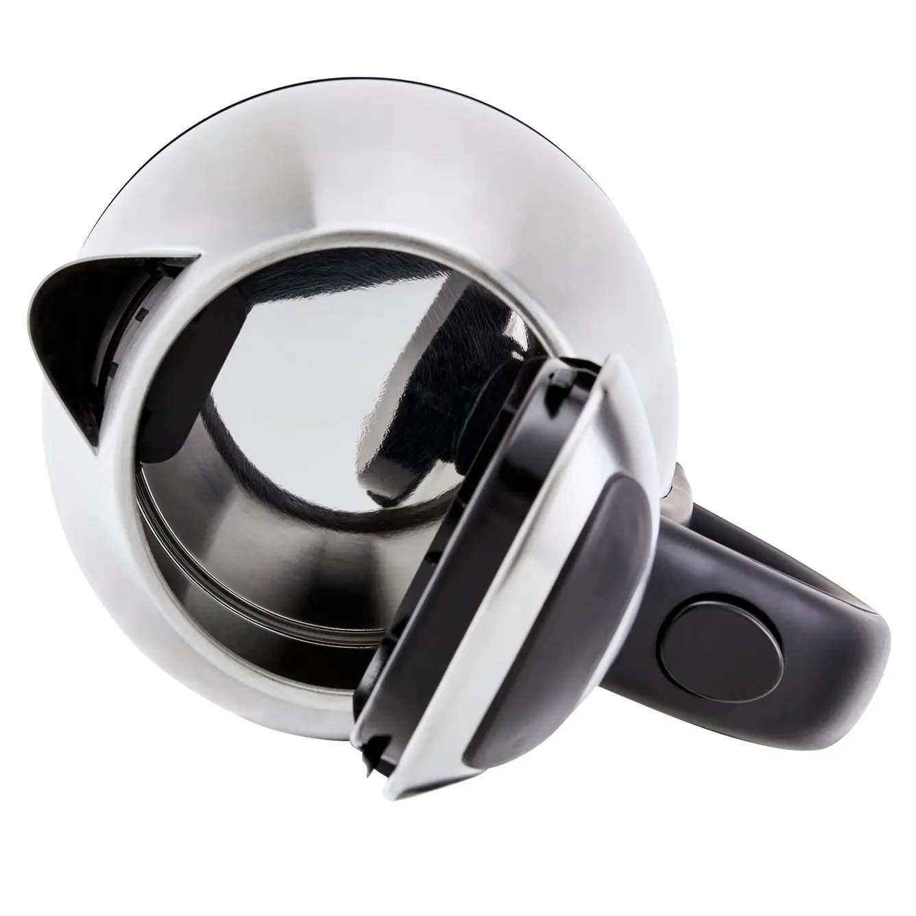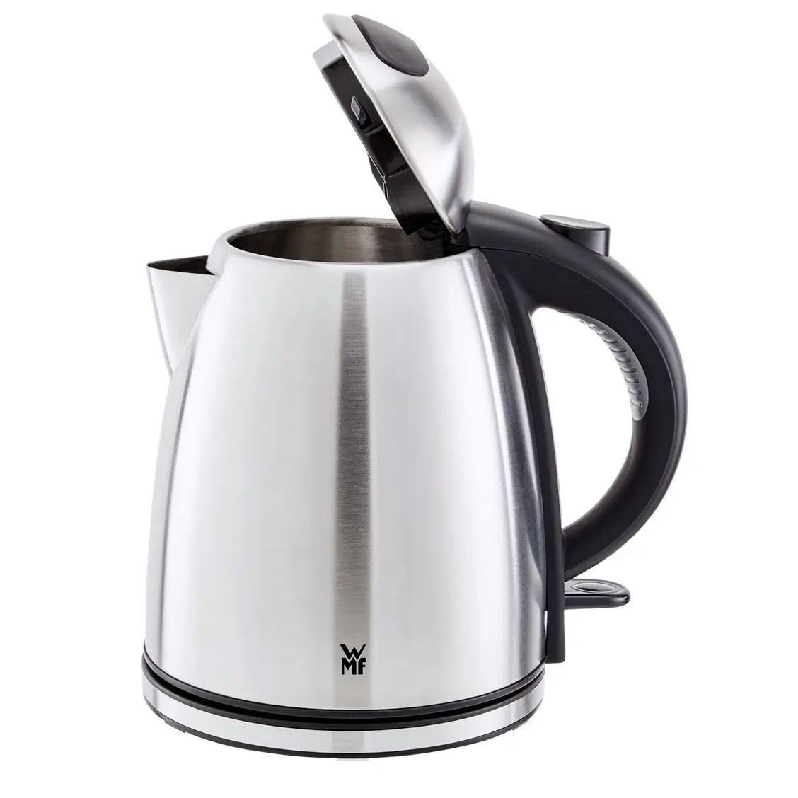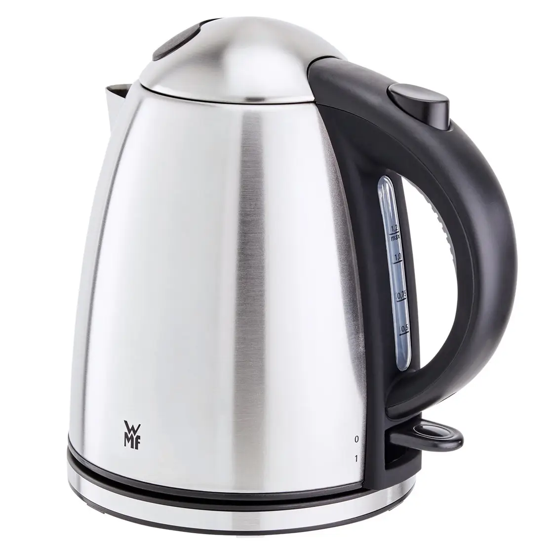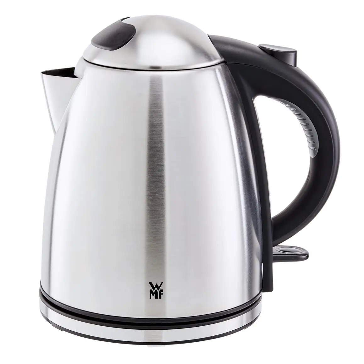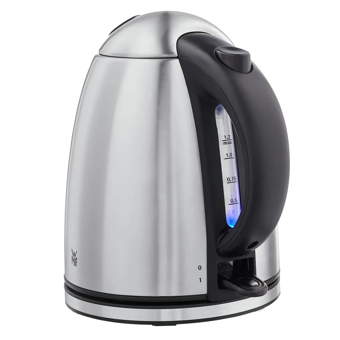 Elektryczny czajnik WMF pasować będzie do każdej kuchni. Dzięki swojemu eleganckiemu wyglądowi podkreśli także wnętrza zaprojektowane nowocześnie i designersko. Obudowa czajnika wykonana został z Cromarganu®, który jest patentem marki WMF. Czajnik o pojemności 1,2 litra został zaprojektowany praktycznie – możesz przechowywać kabel urządzenia w jego podstawie. Wskaźnik poziomu wody w czajniku jest podświetlany jasnobłękitnym kolorem. Czajnik posiada łatwo wyjmowalny oraz oczyszczalny filtr zbierający osadzający się kamień. Łatwość przenoszenia czajnika WMF zapewnia duży uchwyt wykonany z materiału antypoślizgowego. Szybkie gotowanie wody gwarantuje wysoka moc czajnika Stelio – aż 2400 Watt.