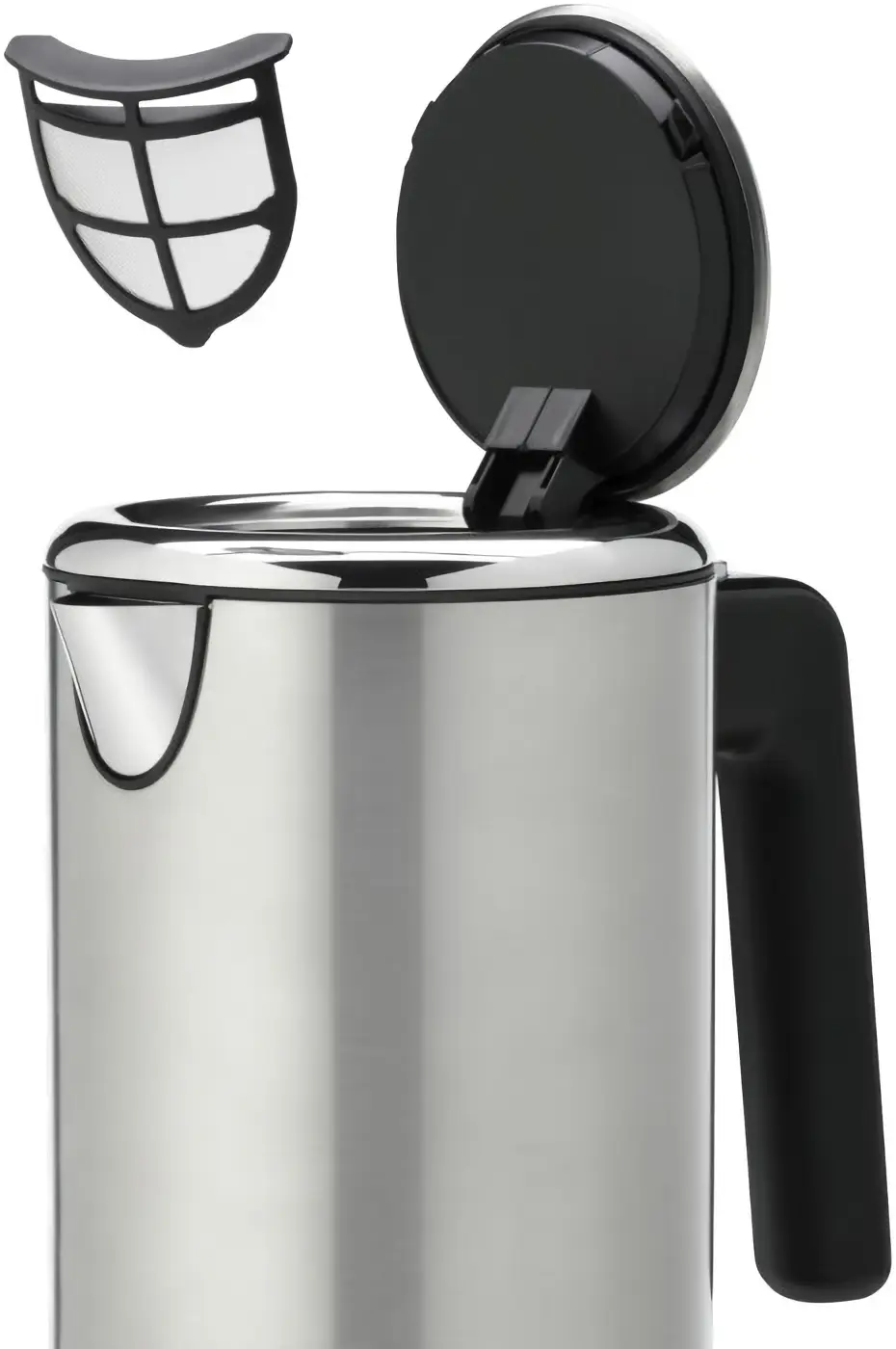 Prezentowany czajnik elektryczny o mocy 2400 W i pojemności 1,3 L wykonany został ze stali nierdzewnej Cromargan, która charakteryzuje się m.in. odpornością na zarysowania i wytrzymałością oraz tworzywa sztucznego. Urządzenie posiada podwójne ścianki - powierzchnia Safety Touch, które uchronią przed przypadkowym poparzeniem dłoni. Z kolei ochrona przed włączeniem na sucho oraz przed przegrzaniem sprawi, że czajnik nie odpali się gdy nie będzie napełniony. Wewnątrz czajnika znajduje się skala, która pozwoli na wygodne odmierzenie ilości wody. Kabel zasilający można zwinąć, dzięki czemu odłączony nie będzie przeszkadzał, gdy urządzenie pozostanie postawione na blacie kuchennym. Czajnik posiada również wyjmowany filtr przeciwidziałający osadzaniu się kamienia.