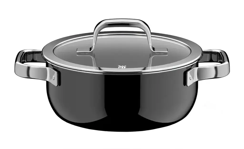 Prezentowany garnek niski o czarnym kolorze, wymiarach 20 x 8,4 cm (śr. x wys.) i pojemności 2,4 L idealnie nada się do przygotowywania różnych potraw w postaci sosów, zup czy dań jednogarnkowych. Dzięki szybkiemu nagrzewaniu i dobremu utrzymywaniu ciepła ułatwi on uzyskiwanie lepszych rezultatów kulinarnych. Garnek wyposażono w ergonomiczne, puste wewnątrz stalowe uchwyty, które nie nagrzewają się zbyt mocno (dotyczy wyłącznie używania na kuchenkach), dzięki czemu można wygodnie nim manewrować. W komplecie znajduje się dopasowana szklano-stalowa pokrywka z uchwytem dla większej kontroli procesu gotowania. Produkt nadaje się na kuchenki ceramiczne, elektryczne, gazowe, halogenowe i indukcyjne. Można go myć w zmywarce, ale zaleca się mycie ręczne.