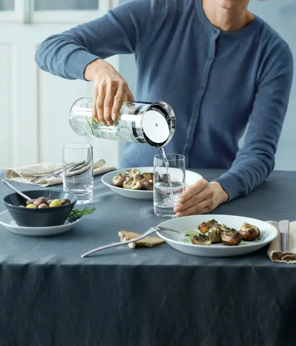 Karafka Motion została wykonana z najwyższej jakości szkła oraz stali nierdzewnej Cromargan 18/10 w wersji polerowanej. Użycie tych tworzyw wpływa na długą żywotność produktu i zachowanie przez lata eleganckiego wyglądu. Funkcjonalna karafka odpowiednia do wszystkich rodzajów napojów. Uzupełniona nalewakiem wykonanym ze stali nierdzewnej oraz uszczelką z silikonu, nie posiada korka. Specjalna konstrukcja zapobiega wylewaniu się zawartości. Karafka doskonale sprawdza się przy serwowaniu wina, soków lub wody.