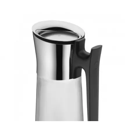 Karafka do wody z uchwytem WMF Basic 1,5 litra, wykonana ze stali nierdzewnej polerowanej Cromargan® 18/10. Czarna plastikowa rączka odporna na ciepło.