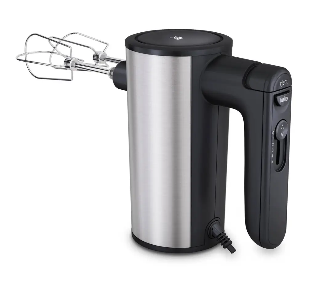 Prezentowany mikser ręczny z kolekcji Kult X ma matowe wykończenie i jest niewielkim, lekkim urządzeniem - waży zaledwie 1 kilogram, co pozwala na wygodną obsługę jedną ręką. Posiada 5-stopniową regulację prędkości, która umożliwi dostosowanie pracy miksera według potrzeb. Moc 400 W wystarczy by bezproblemowo wyrobić ciasta o bardziej zwartej konsystencji jak np. ciasto drożdżowe. Dodatkowo mikser posiada funkcję turbo, dzięki której ubijanie śmietany czy piany z białek będzie szybsze. Urządzenie wyposażone zostało w dwa rodzaje wyjmowanych za pomocą przycisku uwalniającego, łatwych w czyszczeniu końcówek.