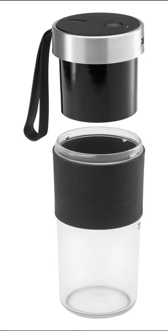 Prezentowany przenośny mini blender idealnie nada się w podróż, pozwalając na szybkie i wygodne blendowanie (zajmuje ono średnio 40 sekund). Urządzenie posiada silnik o mocy 50 W i prędkości 20 000 obrotów / minutę oraz stalowe, 2-skrzydłowe ostrze w zakrętce. Akumulator litowo-jonowy (1200 mAh) do ładowania (wtyczka lub USB) umożliwia - po pełnym naładowaniu - wykonanie do 10 procesów miksowania. Blender jest także odpowiednio bezpieczny w użytkowaniu. Nie tylko wyłącza się on automatycznie, ale również działa tylko wtedy, gdy zakrętka jest założona poprawnie. W komplecie do urządzenia dołączono wykonany z tritanu bez BPA pojemnik o pojemności 300 ml, który można myć w zmywarce. Pozostałe elementy należy czyścić wyłącznie ręcznie.