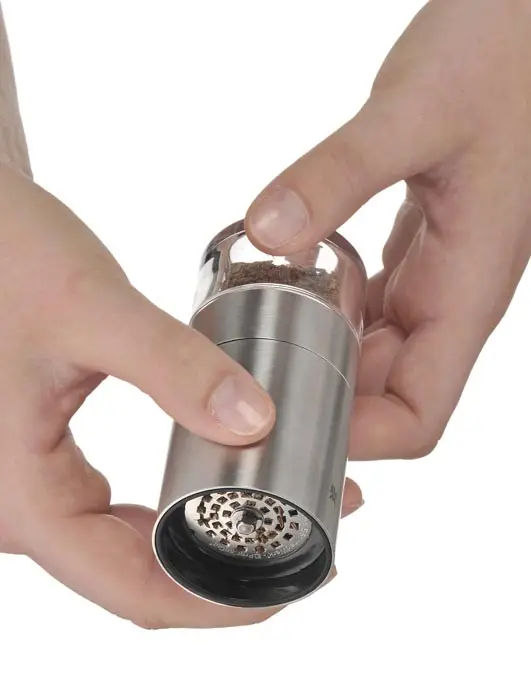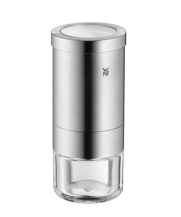 Przedstawiony produk firmy WMF to wykonany z najwyższej jakości stali nierdzewnej Cromargan® młynek ze stylowej kolekcji Gourmet, stal tą cechuje solidność i wysoka jakość. Dodatkowo, użycie szkła po bokach pozwala nam na łatwiejsze kontrolowanie zawartości młynka.