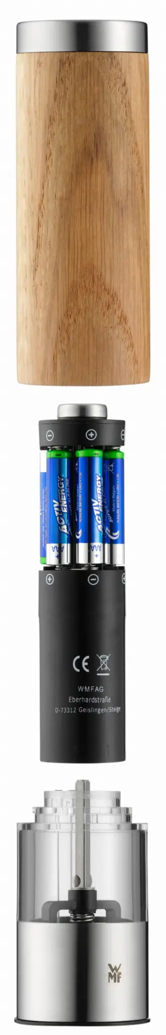 Młynek elektryczny firmy WMF wyróżnia wyjątkowo a jednocześnie prostą i elegancką formą. Wyposażony został w wytrzymały niezawodny ceramiczny mechanizm, który jest w stanie precyzyjnie doprawić wszystkie potrawy. Młynki marki WMF zostały wyposażone w ceramiczne żarna Ceramill®, które pozwalają nam na płynną regulację grubości mielenia oraz długoletnią pracę produktu.