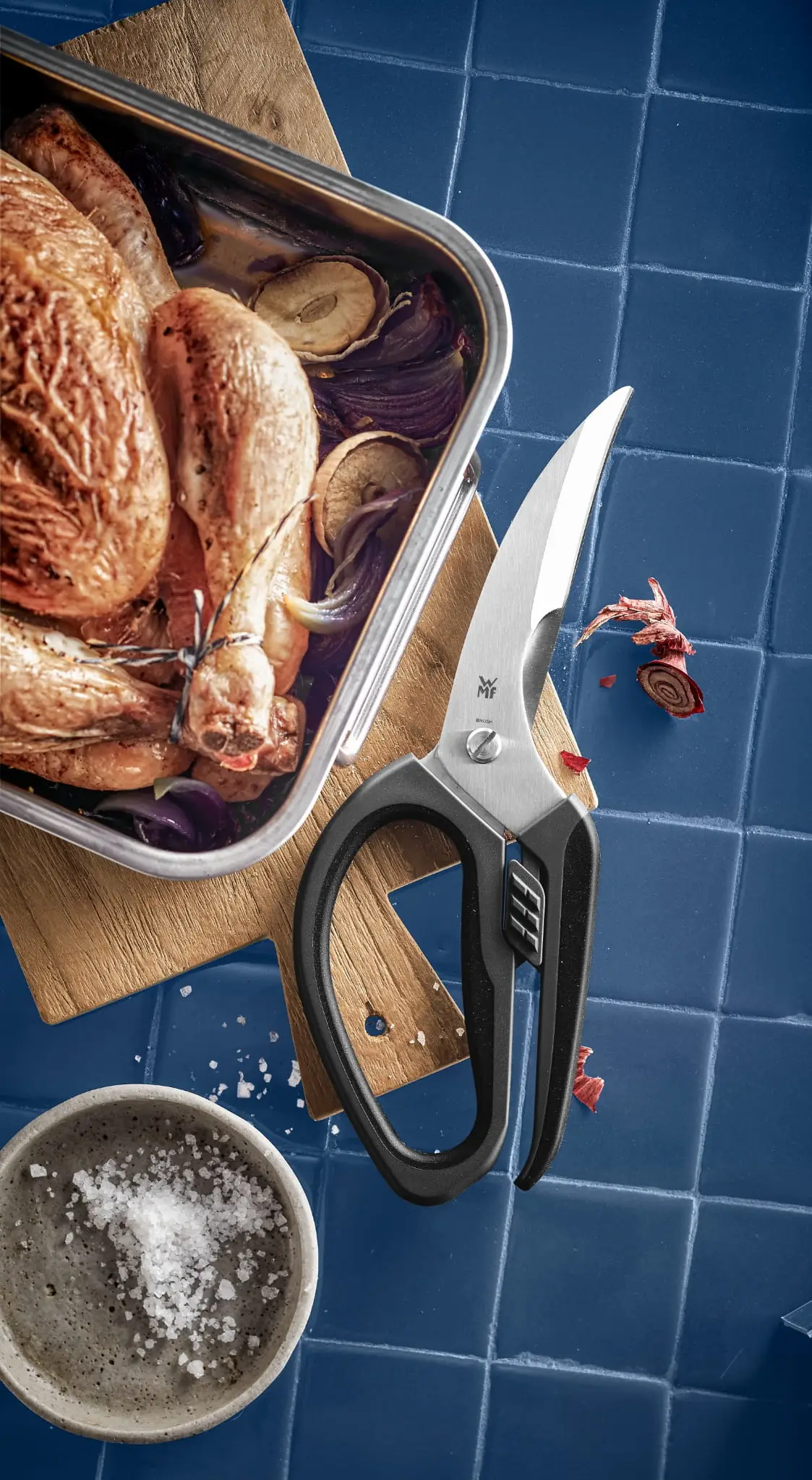 Profesjonalne nożyce firmy WMF zdecydowanie ułatwią państwu cięcie drobiu. Charakterystycznie zakrzywione ostrza nożyczek ułatwią zaś bardzo precyzyjne cięcia oraz odpowiednie porcjowanie mięsa w sposób wyjątkowo wygodny.