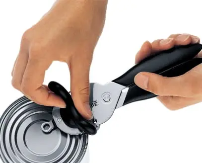 Otwieracz firmy WMF to otwieracz 3w1, gdyż posiada zintegrowany otwieracz do puszek oraz malutkie szczypce, umożliwiające na podniesienie pokrywki.