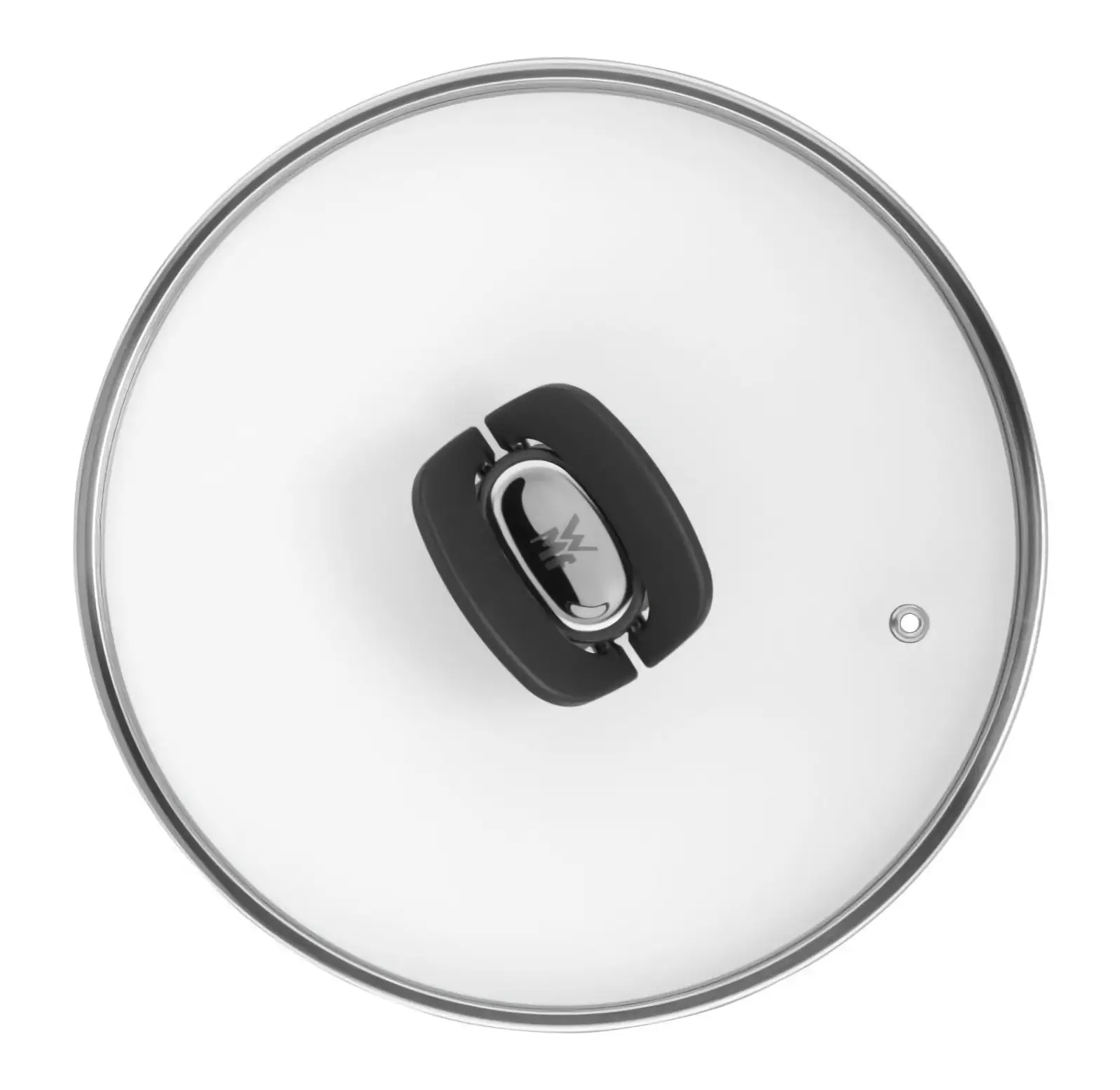 Prezentowana pokrywka o średnicy 28 cm wykonana została ze szkła borokrzemowego i stali nierdzewnej i pasuje ona do wszystkich naczyń z tej serii o tej samej średnicy. Produkt posiada otwór do odprowadzania pary oraz wygodny uchwyt ”motylkowy” z bakelitu, dzięki czemu można bez problemu kontrolować proces gotowania. Dodatkową zaletą pokrywki jest łatwość w utrzymaniu w czystości - nadaje się ona zarówno do mycia ręcznego jak i z pomocą zmywarki.