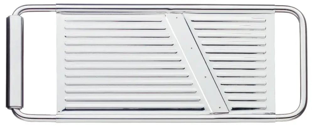 Tarka firmy WMF została wykonana z najwyższej jakości stali nierdzewnej Cromargan® dzięki czemu mają państwo pewność odporności produktu na uszkodzenia. Tarka pozwala nam na precyzyjne jak i równomiernie pokrojenie plasterków wszystkich warzyw bez jakiegokolwiek wysiłku.