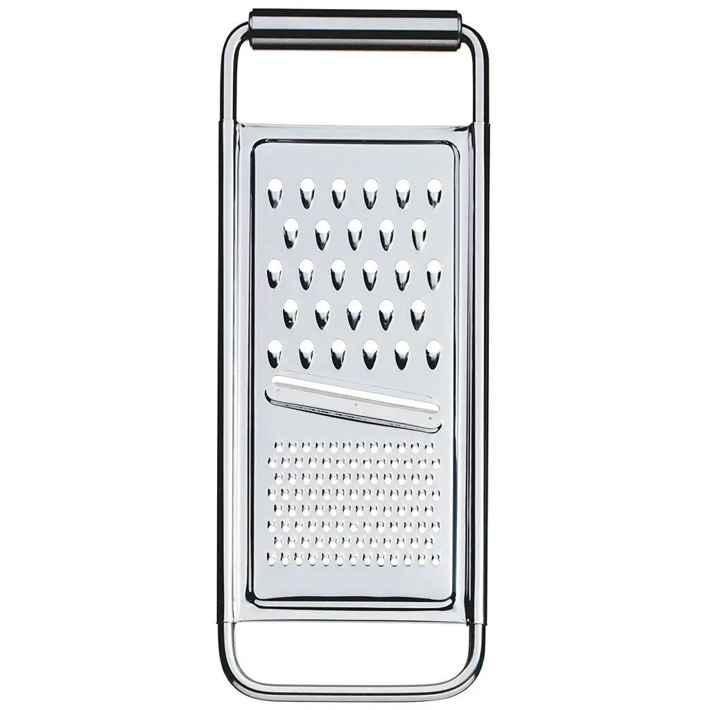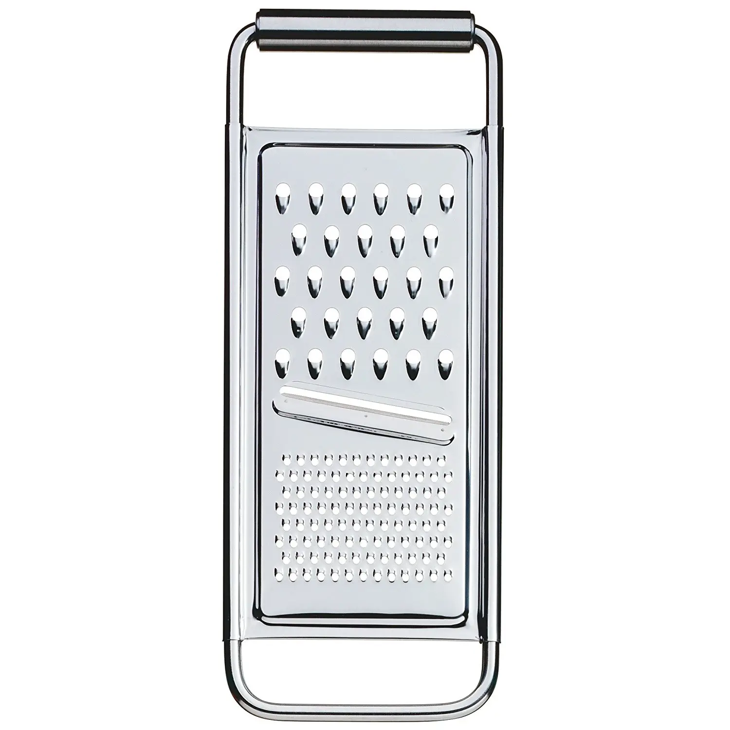 Tarka uniwersalna została wyposażona w 3 rodzaje ostrza: grube oczka, podłużne ostrze do plastrowania oraz drobne oczka, co pozwoli zetrzeć warzywa w dowolny sposób, w zależności od aktualnych potrzeb. Wykonana ze stali nierdzewnej Cromargan® posłuży swym użytkownikom przez długi czas. Poręczny uchwyt umożliwia przytrzymanie narzędzia podczas pracy, co zapewnia komfort użytkowania.
