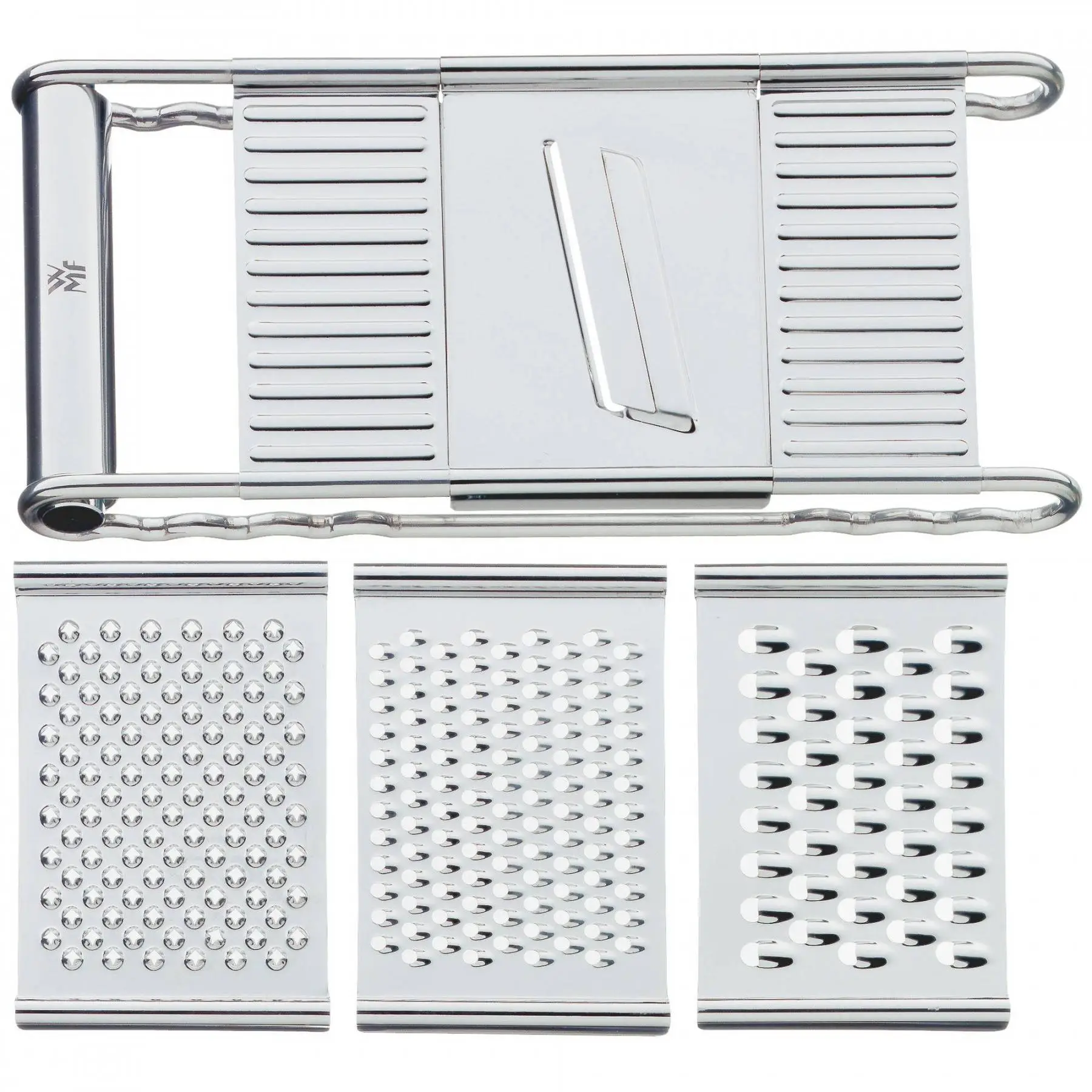 Uniwersalna tarka WMF Gourmet pozwoli na łatwe i szybkie starcie warzyw, owoców, sera, itp. Tarka posiada wymienne ostrza, które umożliwiają ścieranie i plastrowanie. Wykonana została z wysokiej jakości stali nierdzewnej Cromargan®, która nie tylko wygląda wspaniale, ale również zachowuje swoją najwyższą jakość przez długi czas. Tarka posiada wygodny uchwyt, dzięki któremu możemy łatwo przytrzymać ją w trakcie tarcia.