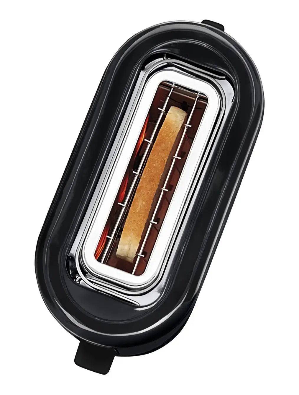Prezentowany toster o mocy 600 W i wymiarach 25,4 x 17,1 x 11,5 cm (dł. x wys. x gł.) doskonale nada się do opiekania kromek chleba, rogalików i bułek (stelaż w komplecie). Urządzenie posiada możliwość wybrania 1 z 7 stopni zarumienienia pieczywa oraz system centrowania pieczywa zapewniający równomierne opiekanie z obu stron. Wyposażono go również w wyjmowaną tackę na okruchy, która ułatwia czyszczenie i zachowanie porządku podczas używania. Kompaktowy rozmiar tostera oszczędza do 50% miejsca na blacie - nie zajmie wiele miejsca w kuchni, świetnie nadając się do małych przestrzeni. Można go też będzie zabrać na wyjazd. Produkt przeznaczony jest do czyszczenia ręcznego.