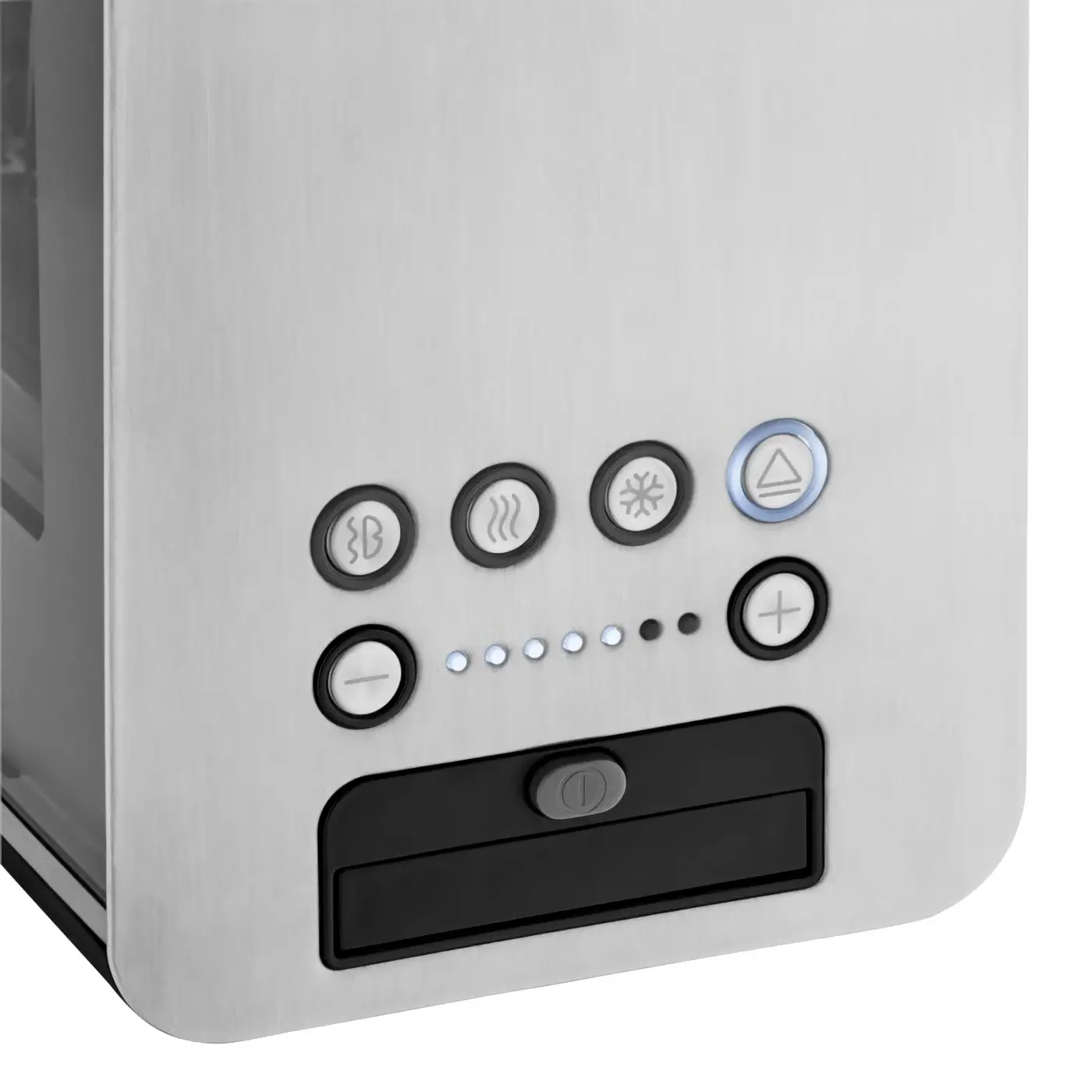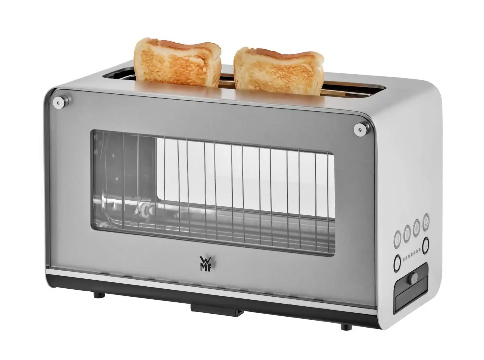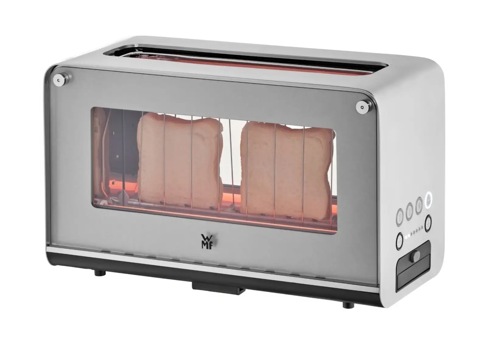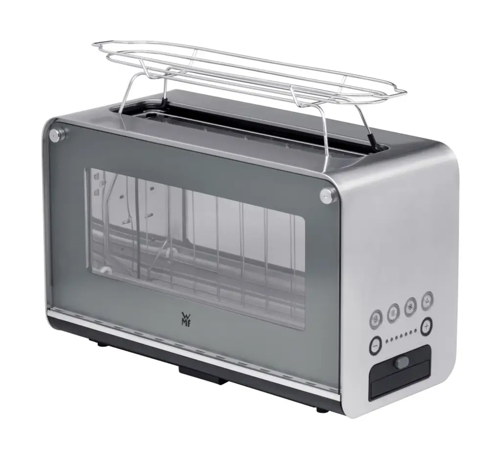 Prezentowany toster ze szklanym okienkiem to nowoczesne urządzenie o mocy 1100 - 1300 W umożliwiające przygotowanie tostów lub bajgli oraz podgrzanie lub rozmrażanie pieczywa. Jego obudowa wykonana została ze stali nierdzewnej Cromargan, która jest materiałem wytrzymałym i odpornym na korozję oraz zarysowania, dzięki czemu odpowiednio używany produkt zachowa estetyczny wygląd i funkcjonalność przez wiele lat. Toster automatycznie centruje kromki, co gwarantuje ich równomierne opieczenie. Dodatkowo przy pomocy podświetlanych przycisków można samodzielnie ustawić stopień zarumienienia pieczywa, wybierając jedną z 7 opcji. Toster posiada wyjmowaną tackę na okruchy, którą będzie można łatwo opróżnić. W komplecie znajduje się także stelaż do bułek.