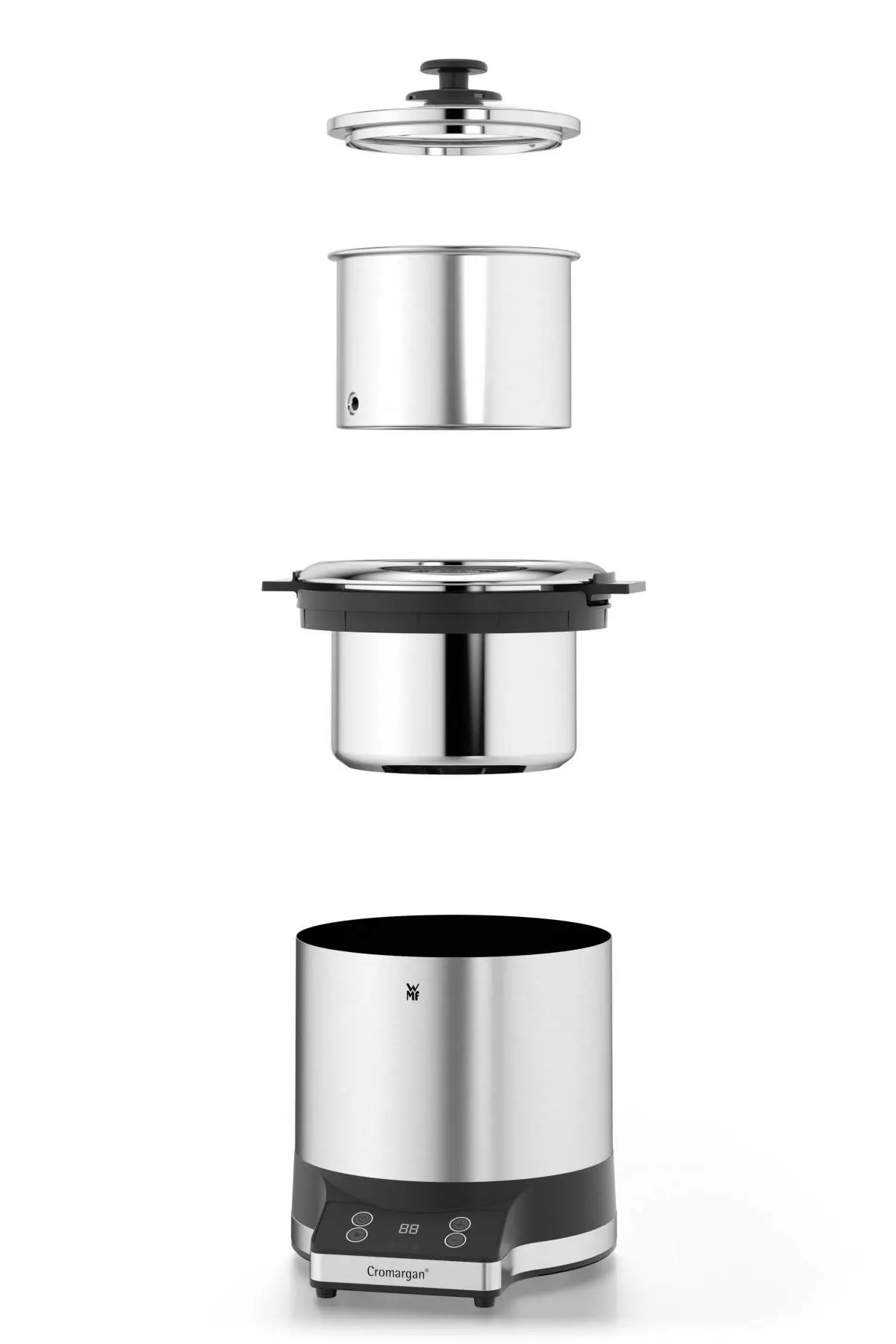Dzięki nowej kuchence do ryżu WMF KuchenMinis z pudełkiem na lunch można przygotować różnorodne posiłki na lunch lub kolację. Nie tylko gotuje ryż, ale także pożywienie, takie jak soczewica, komosa ryżowa, ciecierzyca czy warzywa, wyjątkowo delikatnie. Zapewnia to specjalna podwójna nieprzywierająca powłoka w garnku wewnętrznym i przystawka do gotowania na parze dla warzyw Cromargan. Ciepło jest zawsze równomiernie rozłożone, czas gotowania i gotowania można dokładnie zaprogramować. Niezwykle przydatny na początek: dzięki dołączonemu zatrzaskowi wewnętrzny garnek staje się szczelnym pojemnikiem na lunch - bez kłopotów z ponownym załadowaniem.