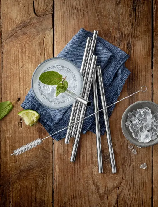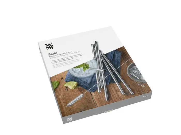 Komplet słomek od niemieckiej firmy WMF z kolekcji Baric który jest idealną alternatywą dla plastikowych słomek zapewniając przy tym większą higienę dzięki zamieszczonej w komplecie szczoteczki do czyszczenia.