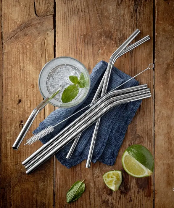 Zestaw składa się ze szczoteczki do czyszczenia oraz sześciu metalowych słomek wykonanych z wysokiej jakości matowej stali nierdzewnej cromargan.