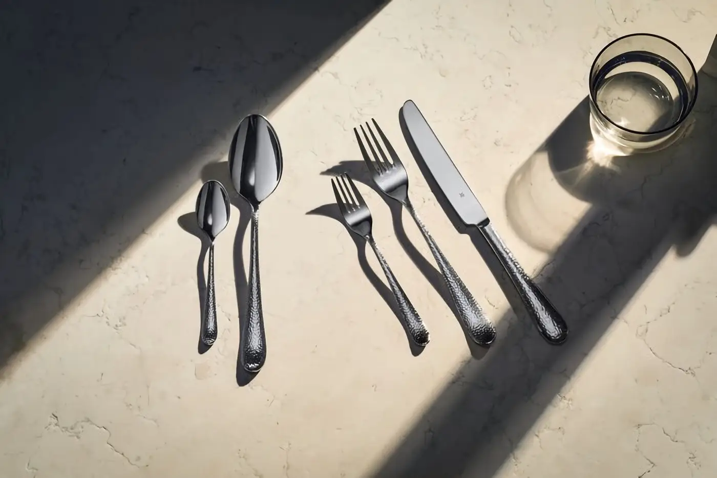 Prezentowany zestaw sztućców Sitello zawiera 30 elementów w srebrnym kolorze i polerowanym wykończeniu. W komplecie znajdują się łyżki, widelce, noże, łyżeczki i widelczyki przeznaczone maksymalnie dla 6 osób. Zestaw doskonale nada się jako podstawowe wyposażenie dla 1 lub 2 osób. Sprawdzi się również jako uzupełnienie posiadanych sztućców w podobnym designie, dzięki młotkowanym uchwytom elegancko i unikalnie prezentując się w szufladzie i na stole. Znajdujące się w zestawie kute noże wykonane są z jednego kawałka stali i mają ząbkowaną krawędź. Dodatkową zaletą produktu jest łatwość w utrzymaniu w czystości - można go myć w zmywarce. Zestaw zapakowany jest w estetyczne pudełko.