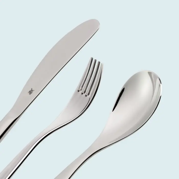 Zabawne, roześmiane i nieco szalone bajkowe postacie z pewnością rozbawią nasze dziecko i zachęcą do skorzystania z takiego zestawu. Z zestawem sztućców dla dzieci Minionki nakłonienie małych dzieci do jedzenia nie będzie już problemem. Doskonała jakość sygnowana logo marki WMF oraz efektowne grafiki na sztućcach zadowolą również rodziców, którzy z pewnością docenią wysoką jakość i wartości edukacyjne prezentowanego tu kompletu. Sztućce wykonane zostały z Cromarganu®, materiału opatentowanego przez WMF, będącego wysokiej jakości stopem stali nierdzewnej 18/10, który łatwo się czyści, jest trwały, odporny na kwasy i rdzę oraz neutralny dla smaku.