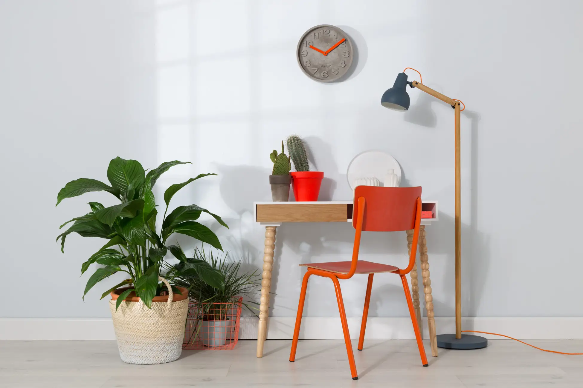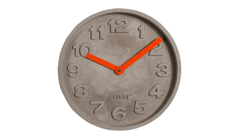 Zuiver - Zegar betonowy z pomarańczowymi wskazówkami