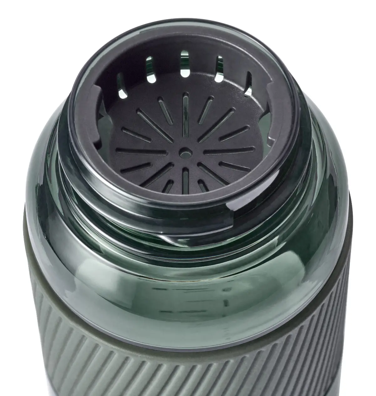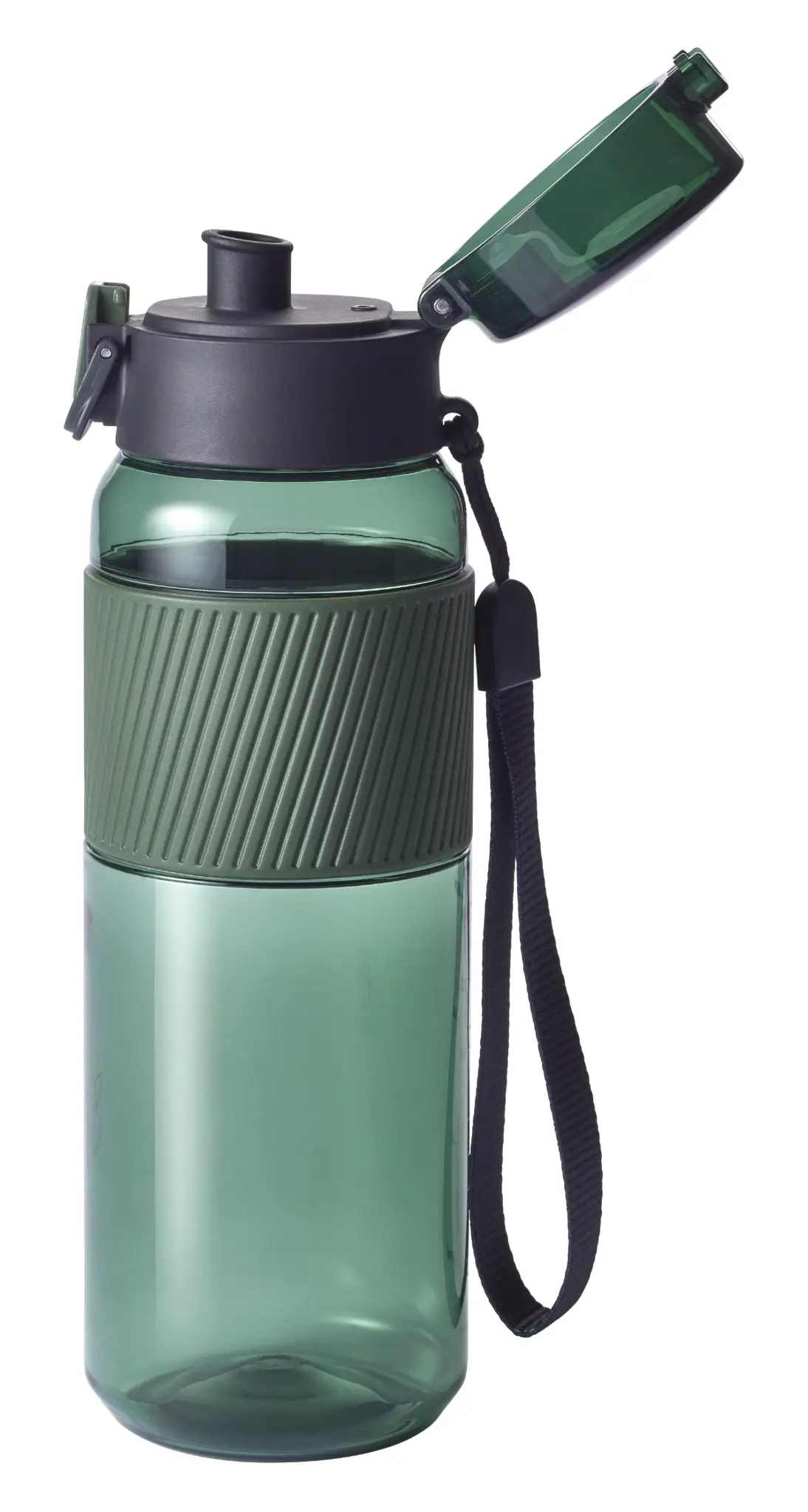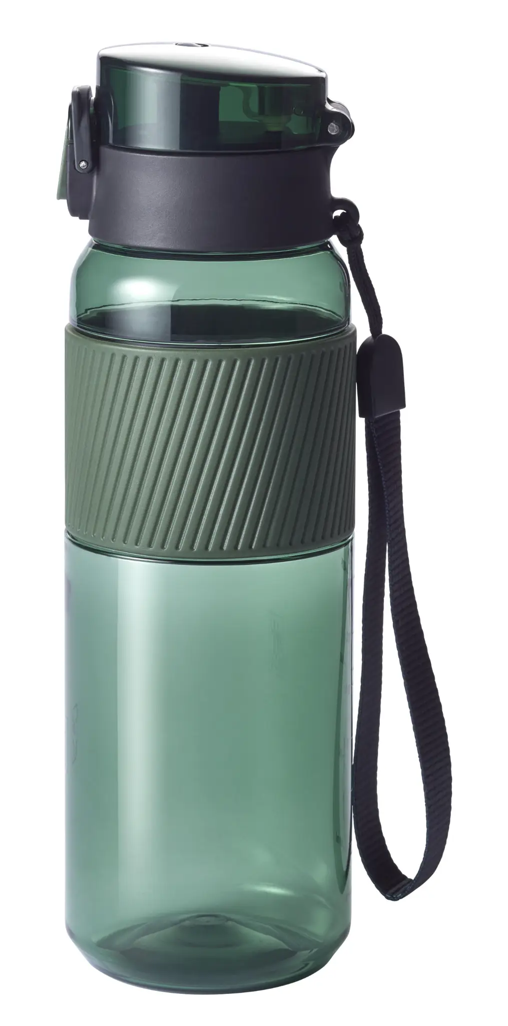 Prezentowany bidon w zielonym kolorze wykonany został z wytrzymałego, nietłukącego się materiału - tritanu (bezpiecznego dla zdrowia tworzywa sztucznego bez BPA), który jest dodatkowo absolutnie bezwonny i bezsmakowy. Produkt jest łatwy w przenoszeniu. Można go bez trudu zmieścić w torbie lub plecaku, bądź transportować w dłoni lub na nadgarstku, dzięki zdejmowanemu paskowi. Samo trzymanie go w dłoni również będzie bezproblemowe i bezpieczne, zapewnia to antypoślizgowe silikonowe etui na całym obwodzie w górnej części. Komfort przenoszenia gwarantuje ponadto jego stuprocentowa szczelność. Na wygodę używania wpływa też możliwość otwierania jedną ręką. Szeroki otwór z kolei umożliwia łatwe napełnianie bidonu sokiem, herbatą, wodą lub innym niegazowanym napojem. Dodatkową zaletą produktu jest łatwość w czyszczeniu - pustą butelkę należy rozebrać na części i umyć pod bieżącą wodą lub z pomocą zmywarki. W komplecie dołączone zostało praktyczne sitko ułatwiające wlewanie soków owocowych, bez przejmowania się miąższem czy pestkami.