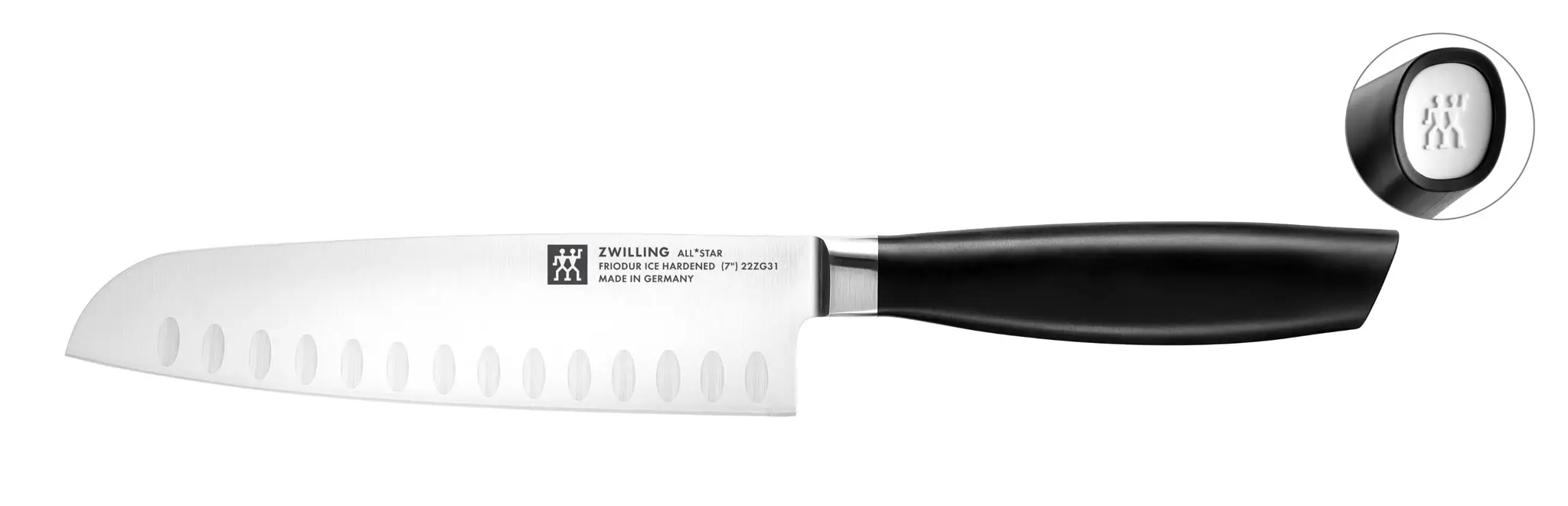 Noże marki Zwilling wyróżniają się wyjątkowo wysoką jakością materiałów wykonania, co przekłada się na ich funkcjonalność w kuchni domowej i profesjonalnej. Kolekcję All Star tworzą wszystkie popularne typy noży o wszechstronnym zastosowaniu. Ich minimalistyczny design z czarnymi uchwytami doskonale odnajdzie się zarówno w nowoczesnej jak i tradycyjnej kuchni. Nasadki na końcach rączek z wytłoczonym logo Zwilling stanowią stylowy akcent kolorystyczny.