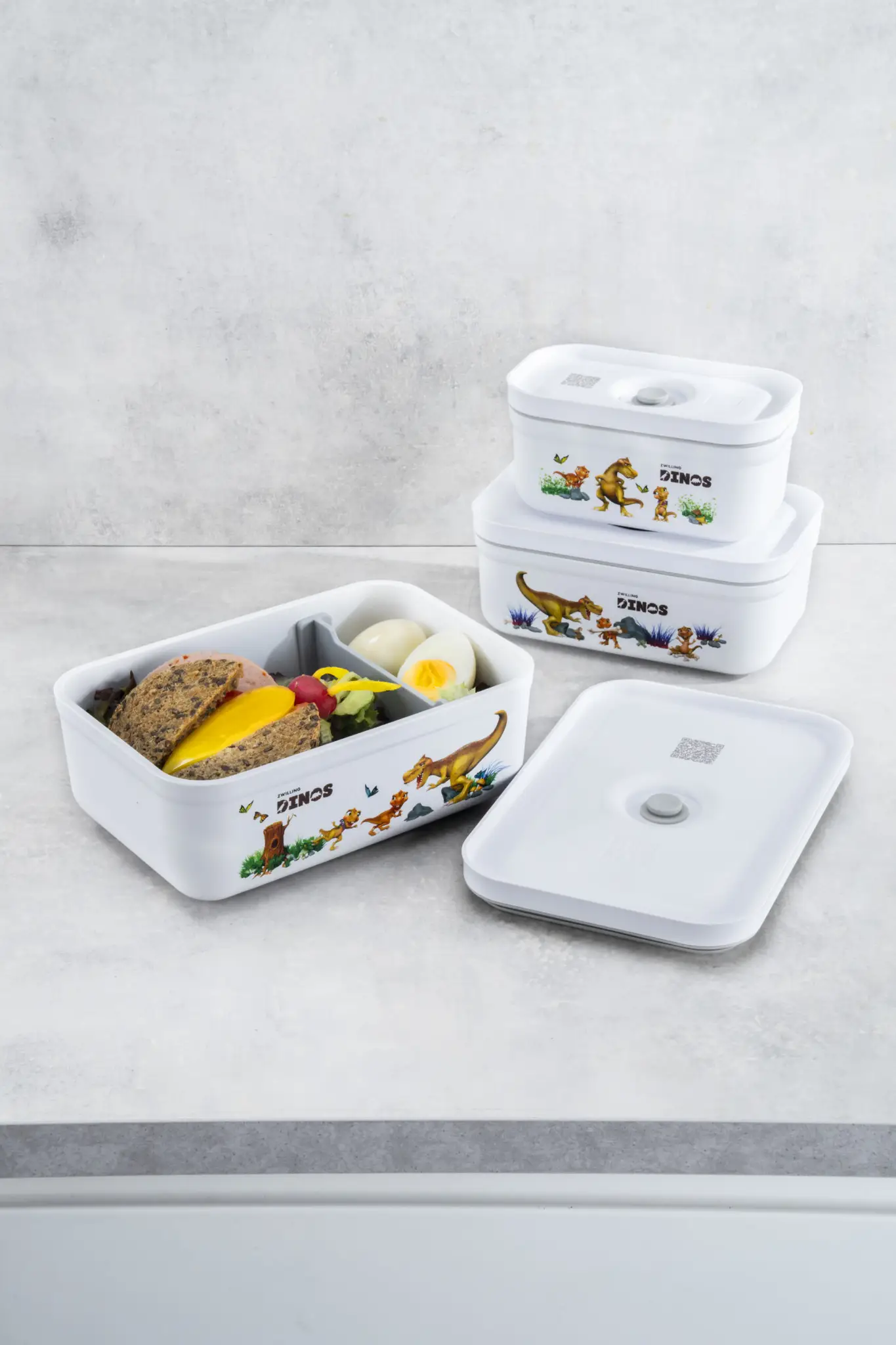 Prezentowany pojemnik w białym kolorze o pojemności 500 ml z motywem Dinos doskonale nada się na posiłki dla dzieci, pozwalając na zachowanie ich aromatu i świeżości do pięciu razy dłużej - z pomocą pompki próżniowej (do kupienia osobno) można usunąć z jego wnętrza powietrze, co spowalnia proces utleniania żywności. Szczelność pokrywy uchroni przed niechcianymi przeciekami do plecaka lub torby, warto jednak transportować je poziomo. Pojemnik można bez obaw myć w zmywarce, co ułatwi czyszczenie. Z kolei możliwość używania w kuchence mikrofalowej pozwoli na podgrzanie posiłku, bez przekładania go do dodatkowego naczynia.