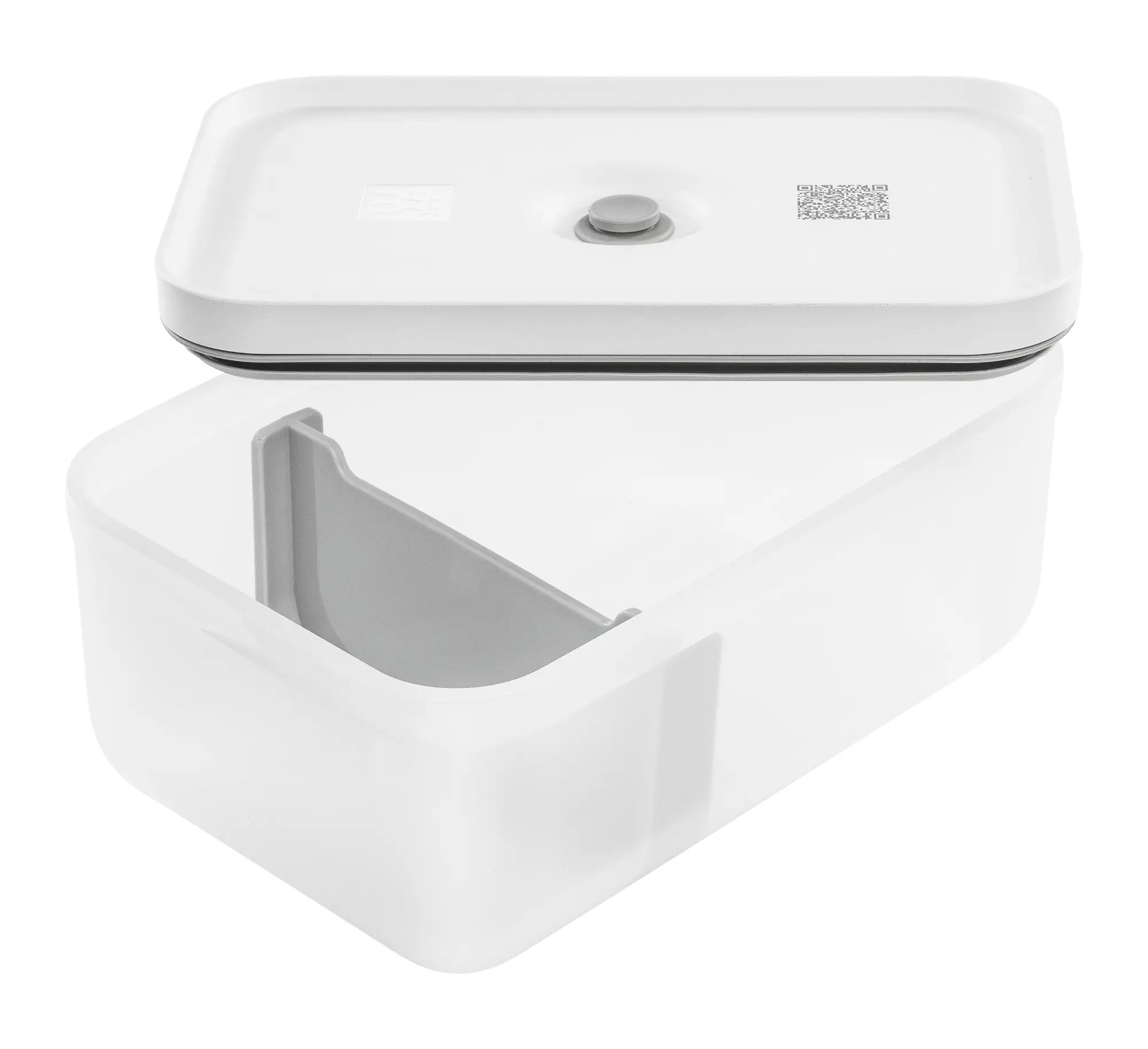 Prezentowany estetycznie prezentujący się pojemnik na lunch ma biało-przezroczystą kolorystykę i pojemność 1,6 litra. Posiada on specjalną pokrywkę która - z pomocą prostej w używaniu poręcznej pompki (do kupienia osobno) - umożliwia szybkie usunięcie powietrza z wnętrza pudełka, co spowolni proces utleniania żywności, zachowując jej aromat oraz świeżość nawet do pięciu razy dłużej. Szczelność pojemnika uchroni przed przeciekami do torby lub plecaka. Zaletami produktu są również możliwość mycia w zmywarce, co ułatwi czyszczenie i używania w kuchence mikrofalowej, co pozwoli na wygodne podgrzanie zabranego do pracy posiłku bez konieczności przekładania go do dodatkowych naczyń. Można go także połączyć z bezpłatną aplikacją marki Zwilling Culinary World, która umożliwia śledzenie terminu przydatności przechowywanych produktów.