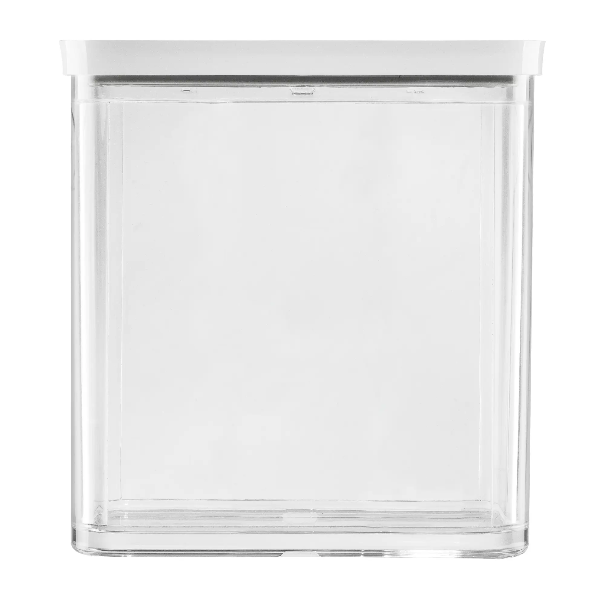 Prezentowany prostokątny pojemnik M o pojemności 2900 ml idealnie nada się do przechowywania produktów sypkich, ziół, suchych dodatków itp. Wykonany został z wyglądem przypominającego szkło, niezwykle trwałego, odpornego na zarysowania tworzywa sztucznego bez BPA. Antypoślizgowa podstawa zapewnia bezpieczeństwo i stabilność, chroniąc pojemnik przed przypadkowym spadnięciem z blatu, półki, czy niekontrolowanym przemieszczaniem się w szufladzie. Przezroczyste ścianki ułatwiają kontrolę ilości przechowanych produktów. Dołączona pokrywka umożliwia szczelne zamknięcie, aby zawartość była chroniona przed powietrzem, szkodnikami i wilgocią. W dodatku jest ona kompatybilna z pompką próżniową FRESH & SAVE, co pozwala na dodatkowe przedłużenie terminu świeżości żywności dając opcję przechowywania próżniowego - posiada innowacyjny zawór (wystarczy, że przyłożysz do niego pompę, naciśniesz przycisk, poczekasz kilka sekund i gotowe). Pojemnik ponadto nie sprawi problemów w czyszczeniu - można go myć zarówno ręcznie jak i z pomocą zmywarki. Produkt można połączyć z aplikacją Fresh & Save, aby śledzić artykuły spożywcze i jeszcze bardziej ułatwić organizację (po zakupie specjalnych etykiet sprzedawanych oddzielnie).