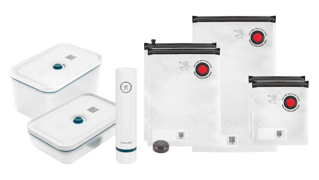 Prezentowany zawierający 2 pojemniki (poj. 1 L i 2 L), 5 woreczków próżniowych w trzech rozmiarach (S - 23 x 20 cm, M - 35 x 25 cm, L - 49 x 30 cm) i pompkę zestaw wykonany został z tworzywa sztucznego bez BPA. Świetnie nada się dla osób dbających o zrównoważone i zdrowe odżywianie, pozwalając na wygodne przechowywanie żywności w lodówce i zamrażarce, dzięki możliwości odessania powietrza utrzymując jej świeżość nawet do pięciu razy dłużej i zajmując mniej miejsca. Da to możliwość przygotowania posiłków na zapas. Zestaw nadaje się także do używania w kuchence mikrofalowej, a torebki próżniowe mogą posłużyć do gotowania metodą sous-vide w temperaturze do 100°C. Dodatkowo pojemniki można myć przy pomocy zmywarki, co znacznie ułatwi ich czyszczenie. Ponadto można go połączyć z darmową aplikacją producenta ZWILLING Culinary World, która umożliwia łatwe i wygodne śledzenie przydatności do spożycia. Nowoczesny wygląd pojemników wpłynie także na wygodę serwowania przechowywanej w nich żywności - nie trzeba będzie używać dodatkowych naczyń.