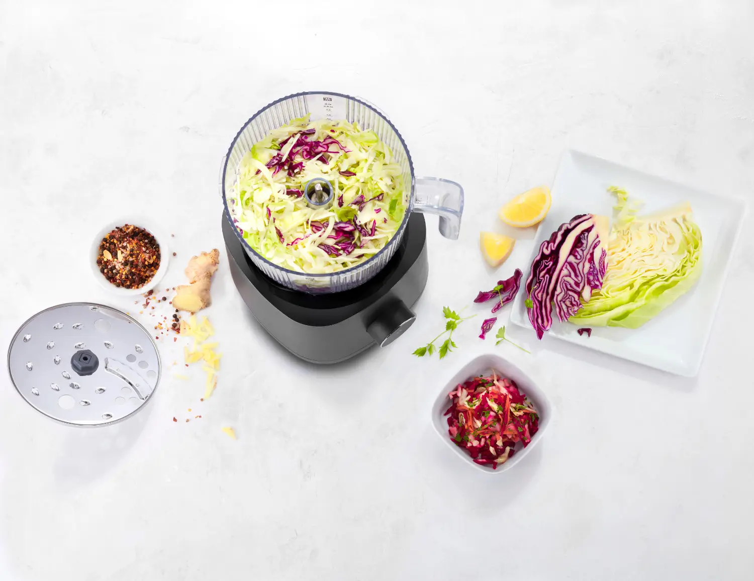 Prezentowany przetwornik w czarnym kolorze wykonany został z wytrzymałego, wysokiej jakości tworzywa sztucznego, które jest wolne od szkodliwego BPA i odporne na uszkodzenia w postaci stłuczeń. Ma on pojemność 1,2 L i pasuje do wysokowydajnego miksera stojącego Zwilling Enfinigy Pro. Umożliwia zwiększenie zastosowań urządzenia, dzięki pięciu przystawkom mogącym pełnić nawet do siedmiu funkcji - teraz codzienne czasochłonne, energochłonne czynności wykonać będzie można za pomocą jednego przycisku. Przetwornik posiada dwie wykonane ze stali nierdzewnej tarcze z ostrzami - grubą i drobną, które pozwalają na krojenie i tarcie przeróżnej żywności m.in. sera czy warzyw. Dodatkowo produkt wyposażony został w hak do mieszania ciasta, rozdrabniacz do siekania orzechów, mięsa i warzyw oraz trzepaczkę do ubijania białek, śmietany czy majonezu. Ponadto jego zaletami są możliwość czyszczenia niektórych elementów w zmywarce (misa, pokrywa i popychacz) oraz łatwość w przechowywaniu - w komplecie dołączony został dwoma oddzielnymi pojemnikami do trzymania wyposażenia.