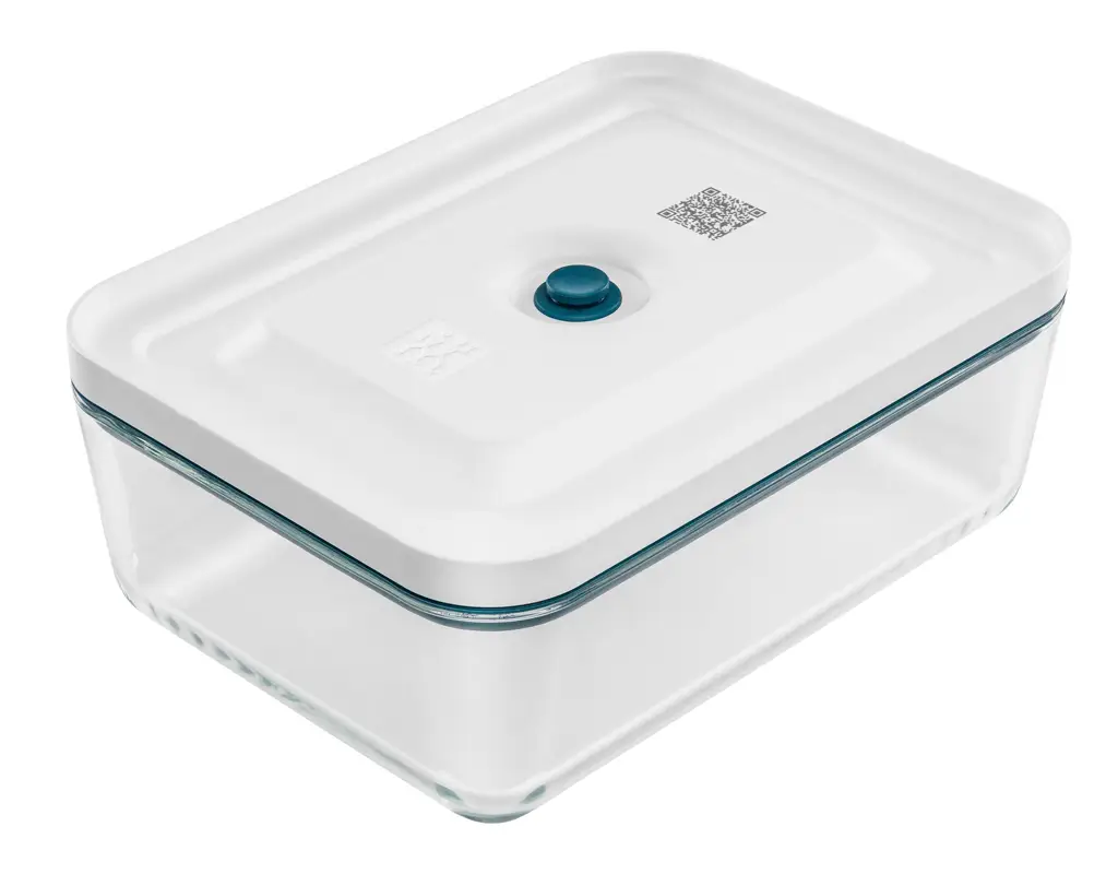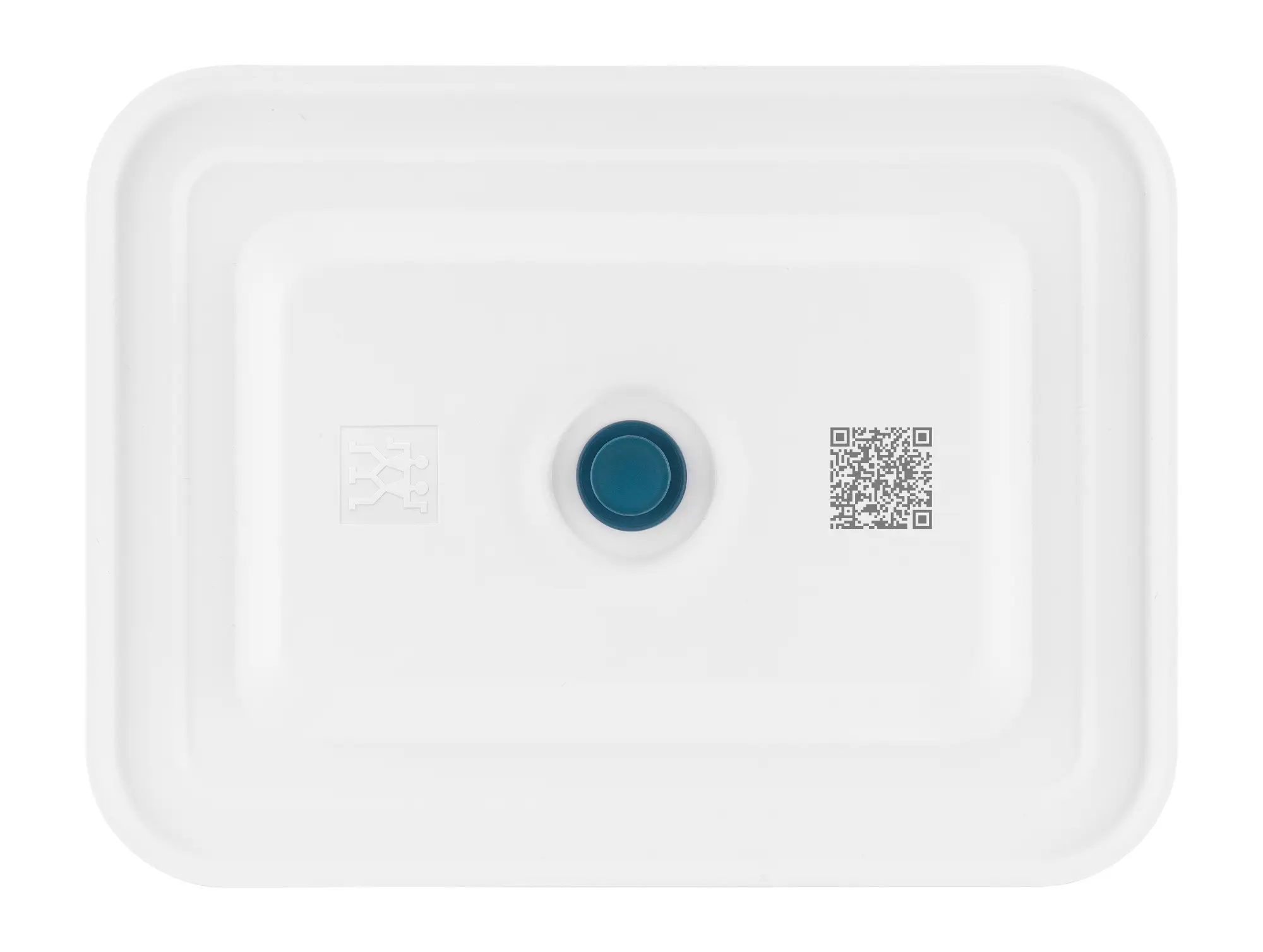 Prezentowany prostokątny pojemnik o pojemności 1,5 L pozwoli nie tylko bezpiecznie przechować kanapki, resztki jedzenia czy warzywa, zachowując ich świeżość do pięciu razy dłużej niż zwykły pojemnik, ale i estetycznie się zaprezentuje na stole podczas ich podania, dzięki czemu nie trzeba będzie używać dodatkowych naczyń. Produkt posiada pokrywkę z innowacyjną technologią podwójnego uszczelniania - posiada ona silikonową uszczelkę w morskim kolorze oraz daje możliwość oczyszczenia pojemnika z powietrza (z pomocą specjalnej pompki próżniowej, nie dołączonej w komplecie), co spowalnia proces utleniania. Pojemnik nadaje się do mrożenia oraz do umieszczania w mikrofali i piekarniku do 180°C. Można go również bez obaw myć w zmywarce, co ułatwia czyszczenie. Marka Zwilling umożliwia połączenie przechowywanej w pojemnikach żywności z bezpłatną aplikacją ZWILLING Culinary World, dzięki czemu można wygodnie kontrolować termin jej przydatności.
