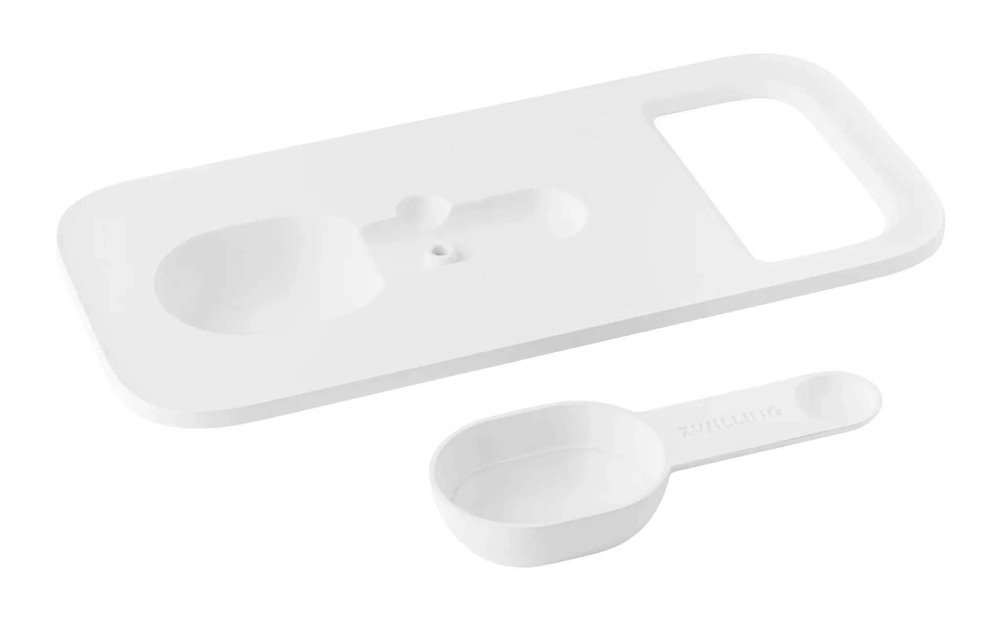 Prezentowany wkład 4 w 1 wykonany został z białego tworzywa sztucznego niezawierającego BPA. Pasować będzie do wszystkich pojemników Fresh & Save Cube w rozmiarze M (700 ml, 1800 ml, 2900 ml), sprawiając że będą jeszcze bardziej praktyczne. Bez problemu zmieści się pod pokrywką. Dość duży otwór pozwala na wygodne wydobywanie większych ilości produktów w proszku lub ziarnistych np. cukru, kakao, płatków owsianych. Z kolei w bardziej precyzyjnym dozowaniu pomoże dołączona w komplecie miarka z trzema opcjami dozowania (łyżeczka do kawy - 15 ml, łyżeczka do herbaty - 5 ml i szczypta), którą można łatwo przechowywać w specjalnym zagłębieniu we wkładzie. Dodatkową zaletą produktu jest bezproblemowość w czyszczeniu, nadaje się on do mycia ręcznego i w zmywarce.